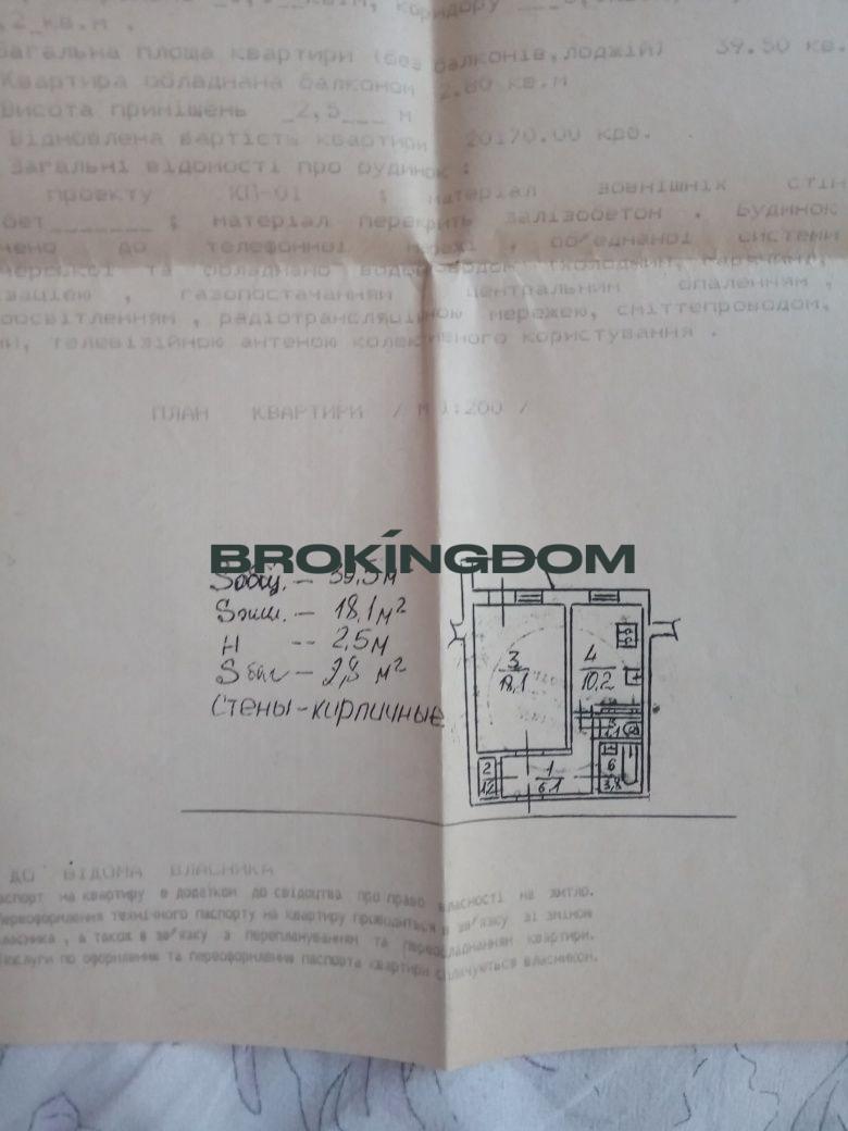 код 54628 Площа 40/18/10 Поверх 6/9 Світла простора 1к квартира з великим балконом на Полярній 8Д, Мінський масив Друга лінія Цегляний будинок Потребує ремонту! Є велика комора. Вікна виходять у зелений двір, на південь.