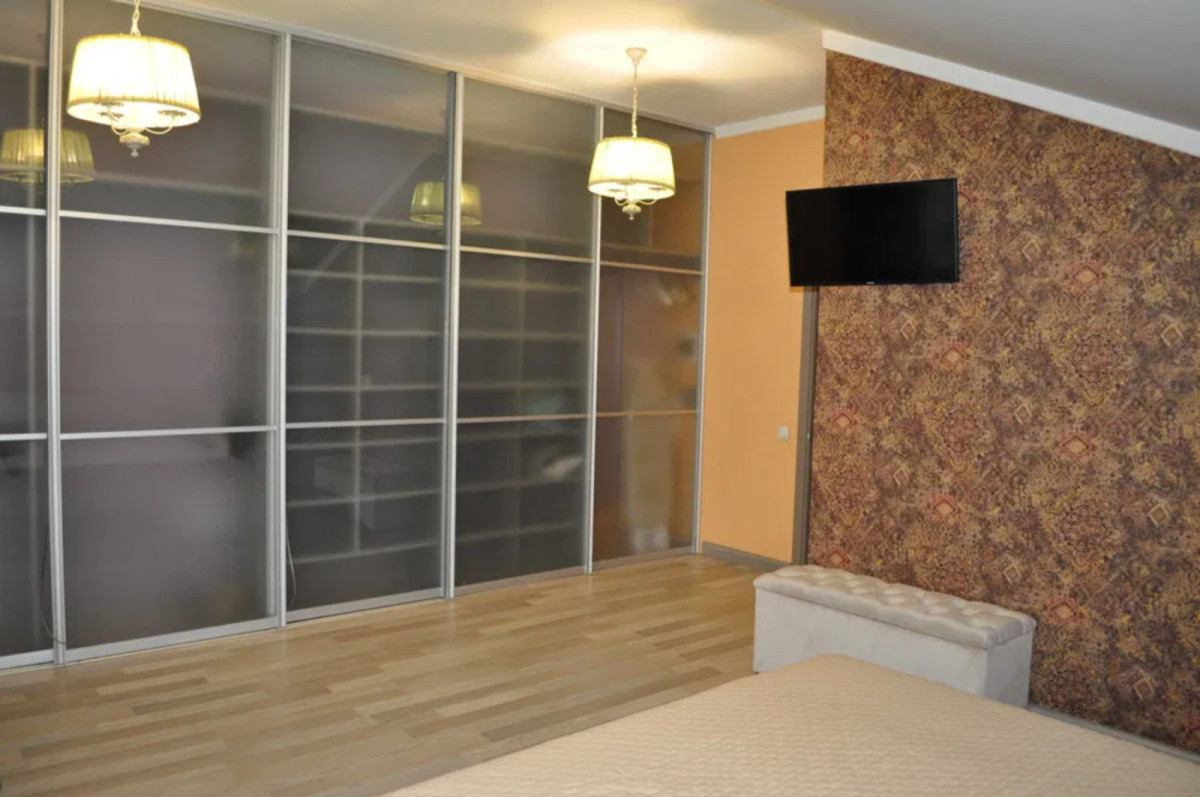 - На 2-му поверсі розміщена спальня з виходом на балкон(двоспальне ліжко, шафа ,TV) . Також дитяча та гостьова кімнати і санвузол з ванною .