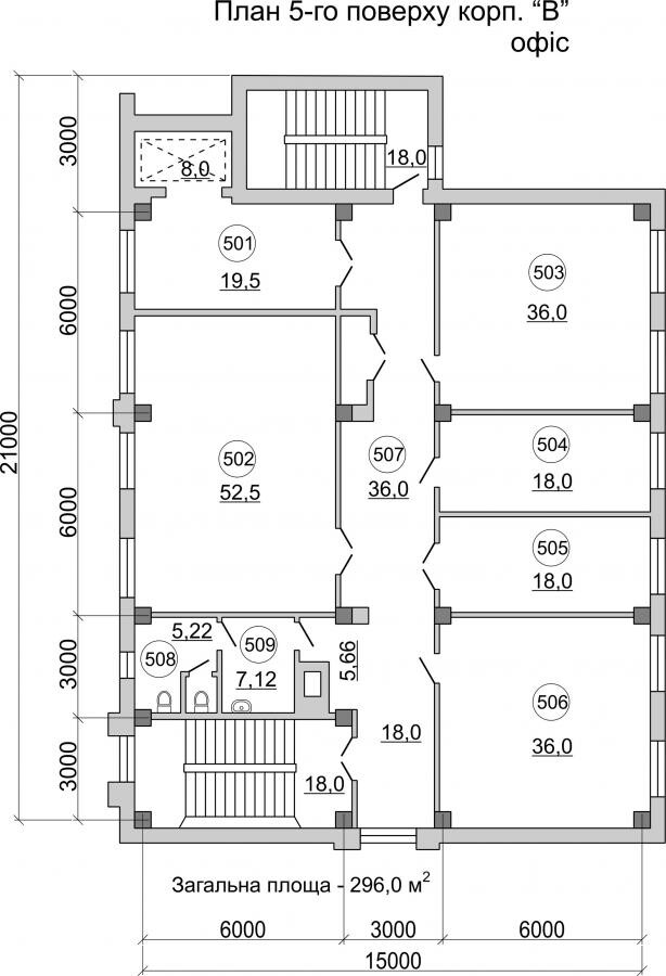 Долгосрочная аренда офиса в центре Киева, Гайдара 22, Микрорайон Паньковщина, Голосеевского района. Площадь 296 м.кв (5 кабинетов, 2 санузла) весь 5 этаж корпуса В.