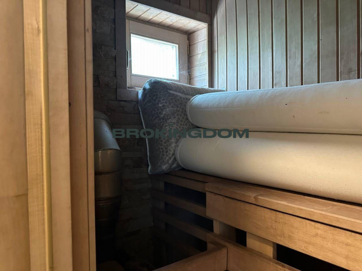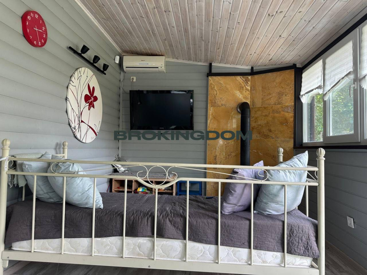 Оптимізоване планування будинку дозволяє комфортно жити сім'ї з 4-х осіб з можливістю додаткового розміщення гостей. 2 спальні, кухня-вітальня, з/в із сауною на дровах, велика тераса з каміном. Будинок зроблений за модульно каркасною технологією з утепленням мінераловатним утеплювачем підлогу та стіни 150 мм, покрівля 200. Двокамерні склопакети. Кондиціювання (2 шт). Опалення: тепла підлога та електричні конвектори. Площа 56, 7 м2. Побудований у 2013 році.Ремонт 2021 р. Господарський блок -12, 5 м2. Паркування на 2 авто на ділянці, за парканом додатково можна розмістити 2 автомобілі.