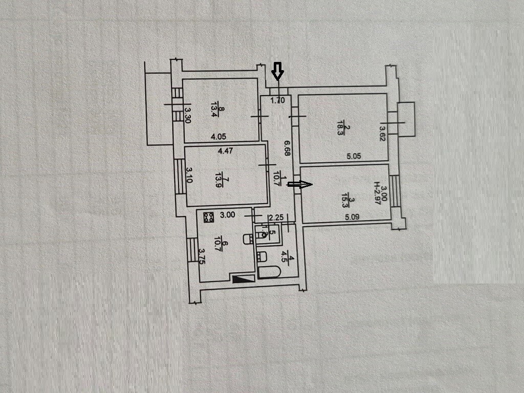 В квартире 4 комнаты, кухня 10,7 кв.м
