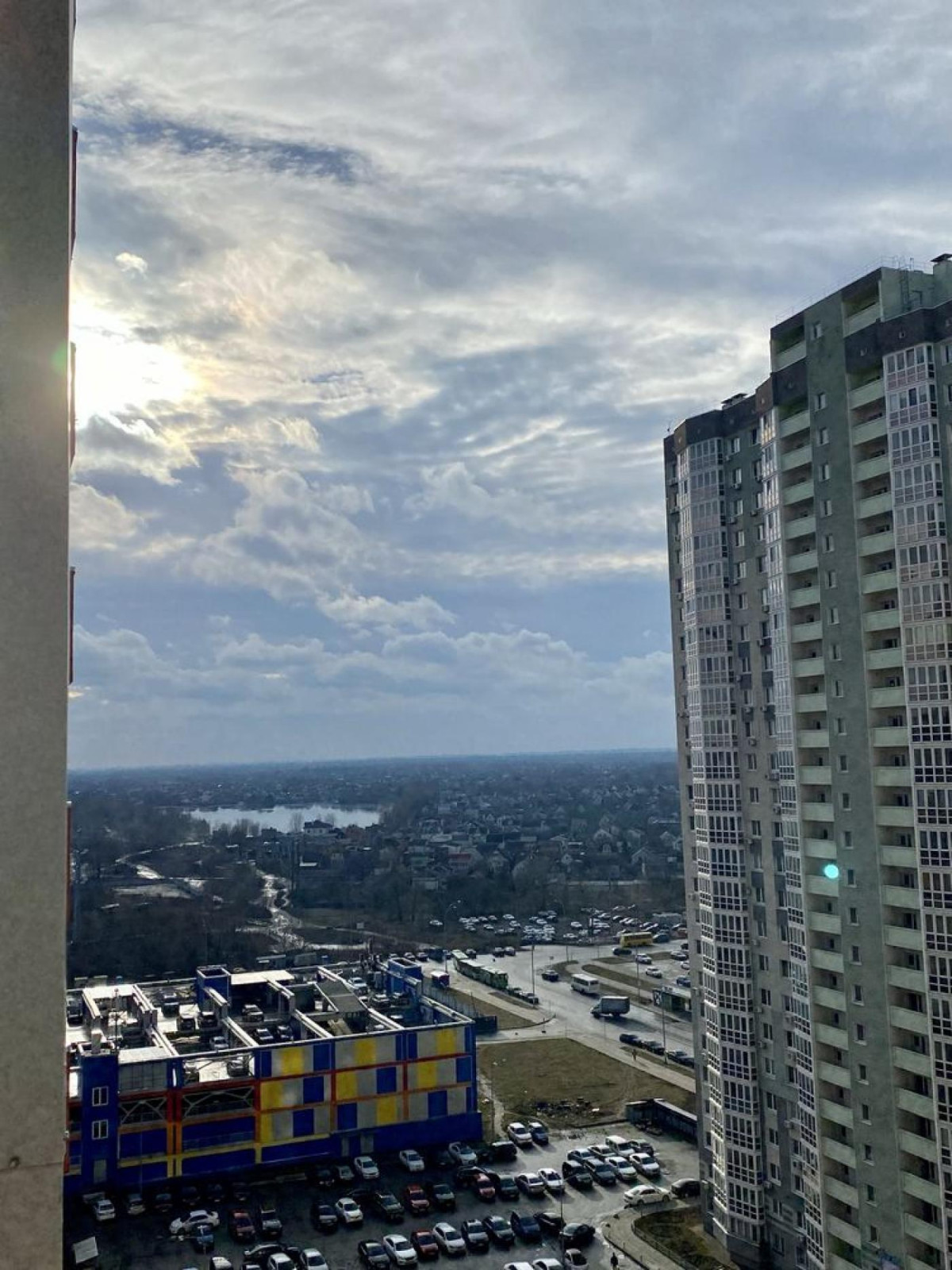 Видовая квартира, находиться на 15 этаже, общая алощадь 43 квадрата, комната 16, кухня 10, большой панорамный балкон.