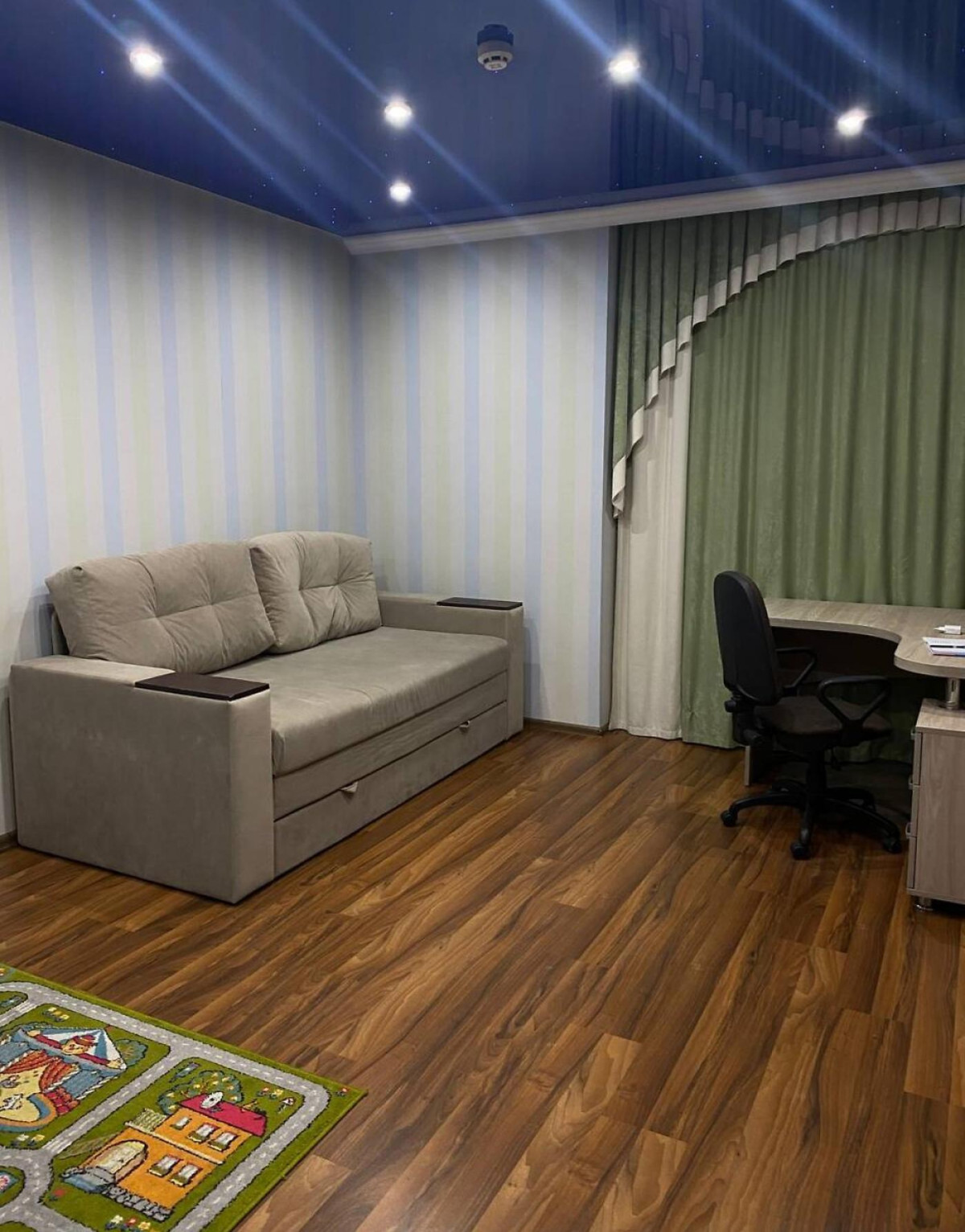 кімната з диваном може бути кабінетом чи дитячою;
