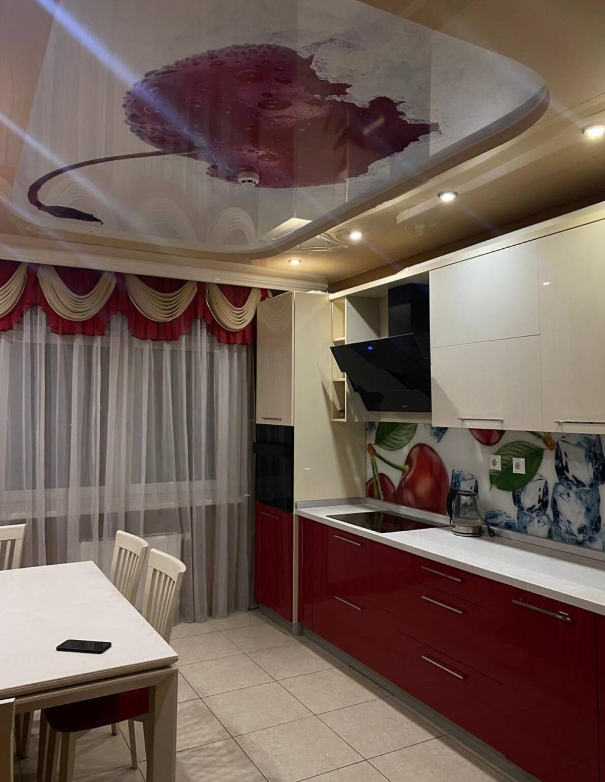 простора кухня з усією технікою: посудомийна, духовка, холодильник, пральна машинка, сушка, бойлер.