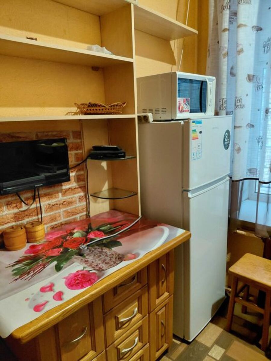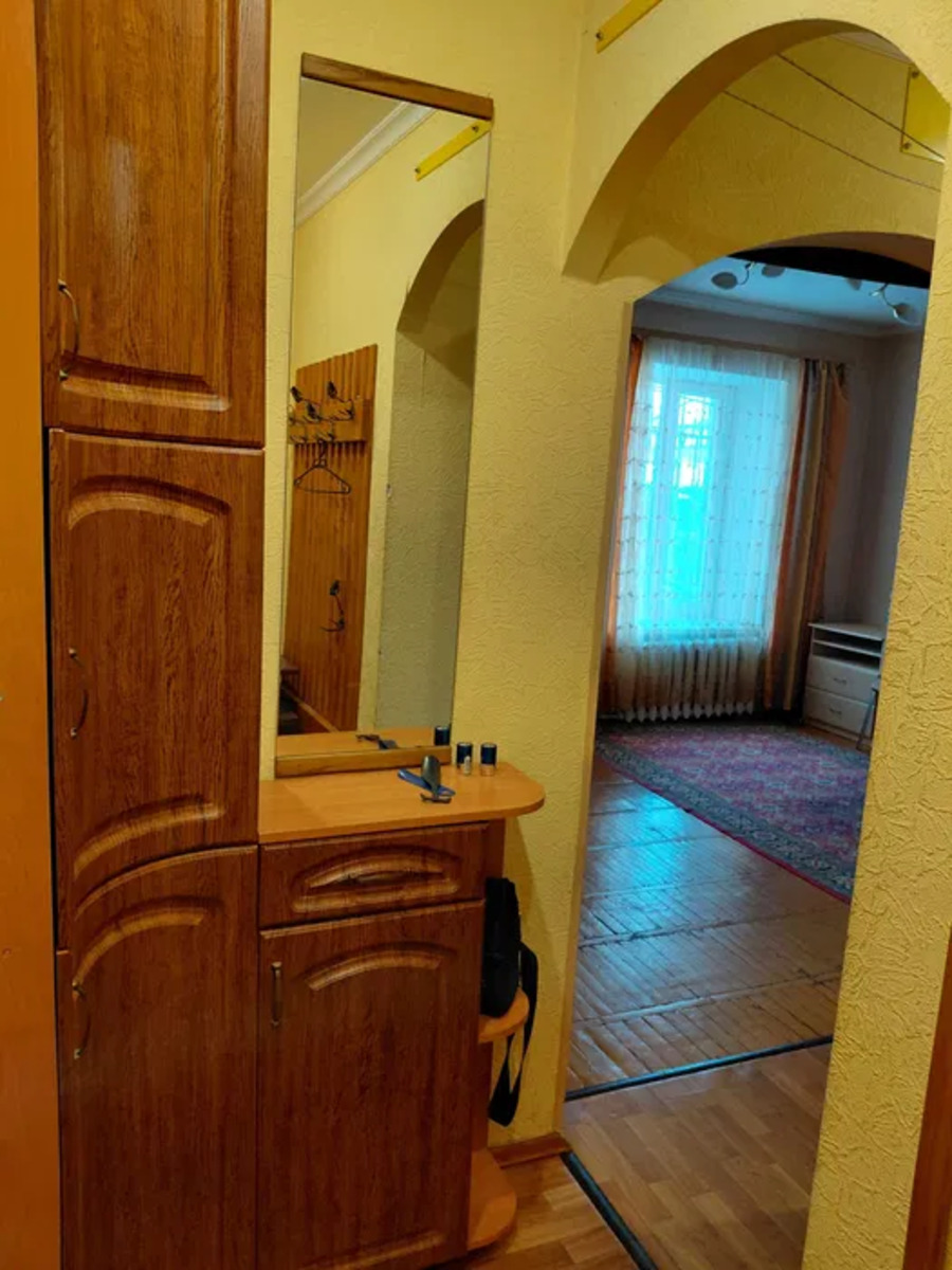 Однокімнатна квартира в центрі. Зупинки транспорту, магазини, ринок - все поряд. Є місце для машини. 1 поверх. Встроєна шафа. Кондиціонер, телевізор. Диван новий. Є холодильник, мікрохвильовка, пральна машина, гаряча вода є завжди. Санвузол суміжний. 8000грн.