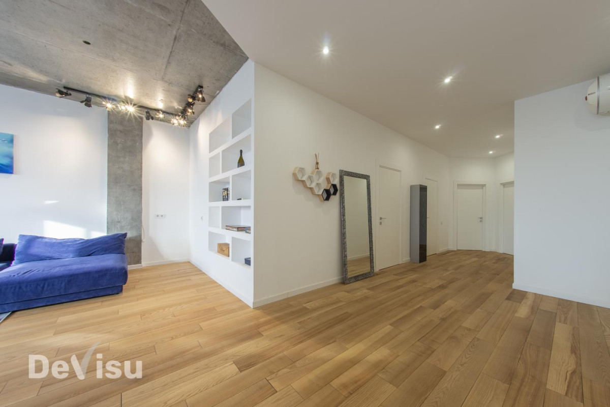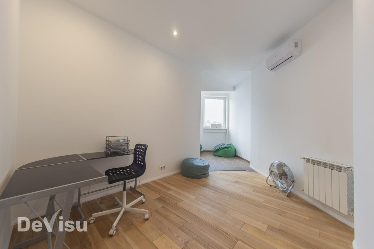 Три роздільні кімнати, загальною площею 160 м2, розташована на 10 поверсі 23-поверхового будинку. Три ліфти, один з них грузовий. Автономне теплопостачання та водопостачання.