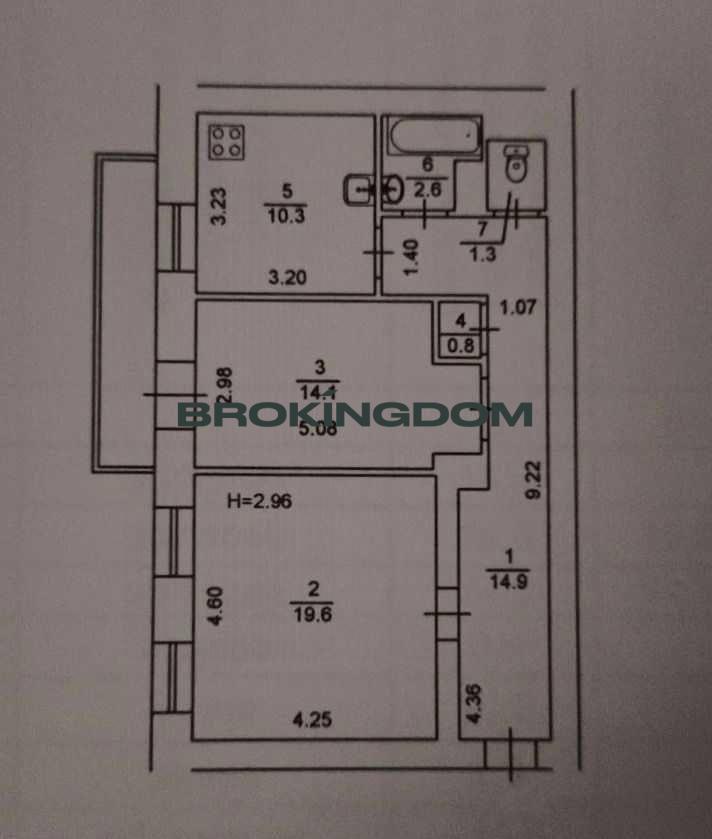 Висота стелі: 2,96 м