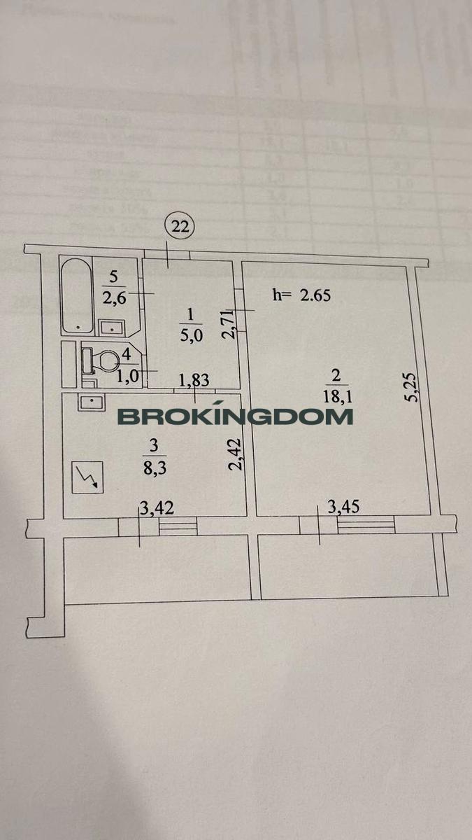 Розташована на 5 поверсі 16ти поверхового будинку за адресою: Лариси Руденко, 10, площею 39 кв. м. з двома лоджіями. Планування роздільне, кімната 18.1 кв.м., кухня 8.3 кв.м., роздільний санвузол.