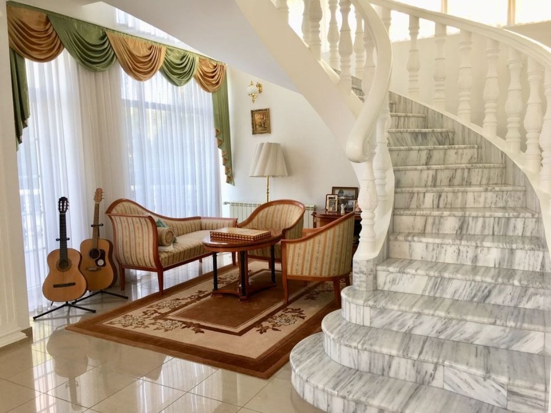 - Простора вітальня з камінним залом — 90 м2;