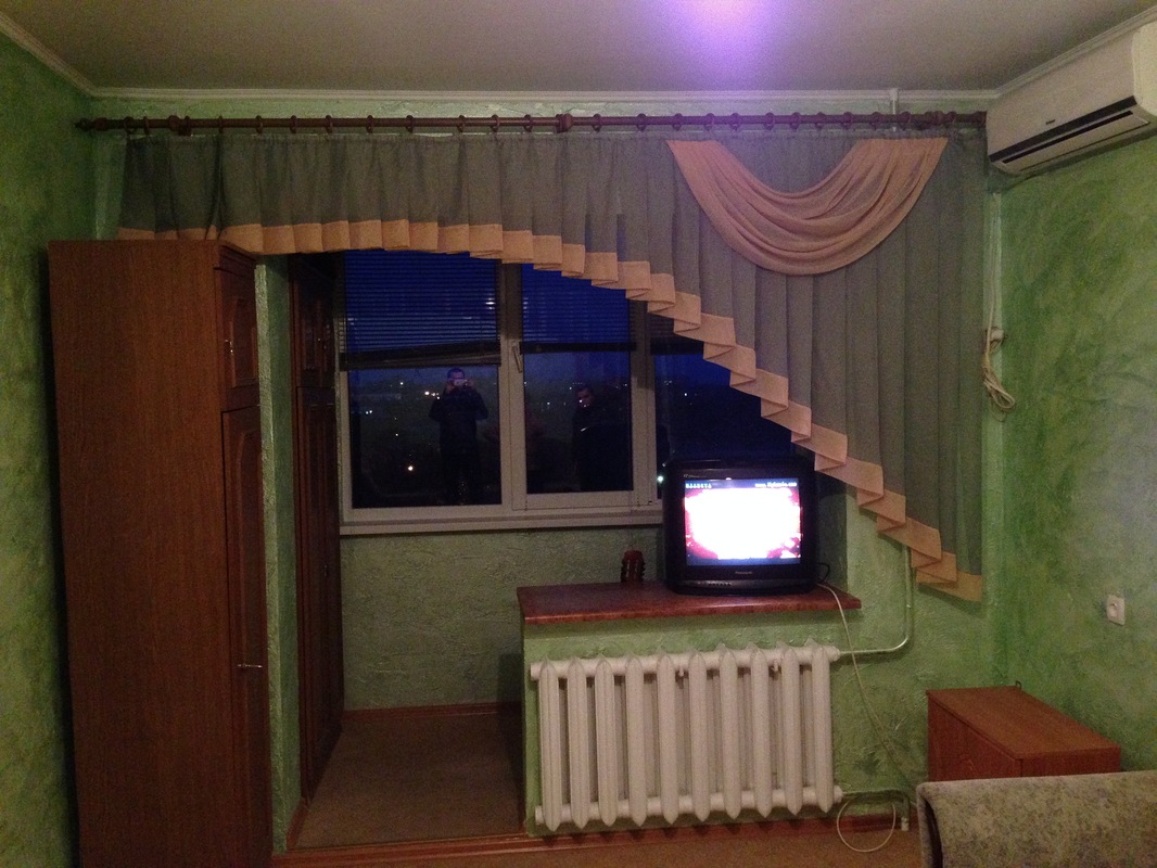 Капитальный ремонт (под эвро), встроенная кухня, ваннаятуалет раздельные, шкаф, 2 дивана, 2 телевизора, стиральная машина, холодильник, микроволновая печь. Коридор и кухня на полу плитка в комнате ковролин. Балкон совмещен с комнатой.