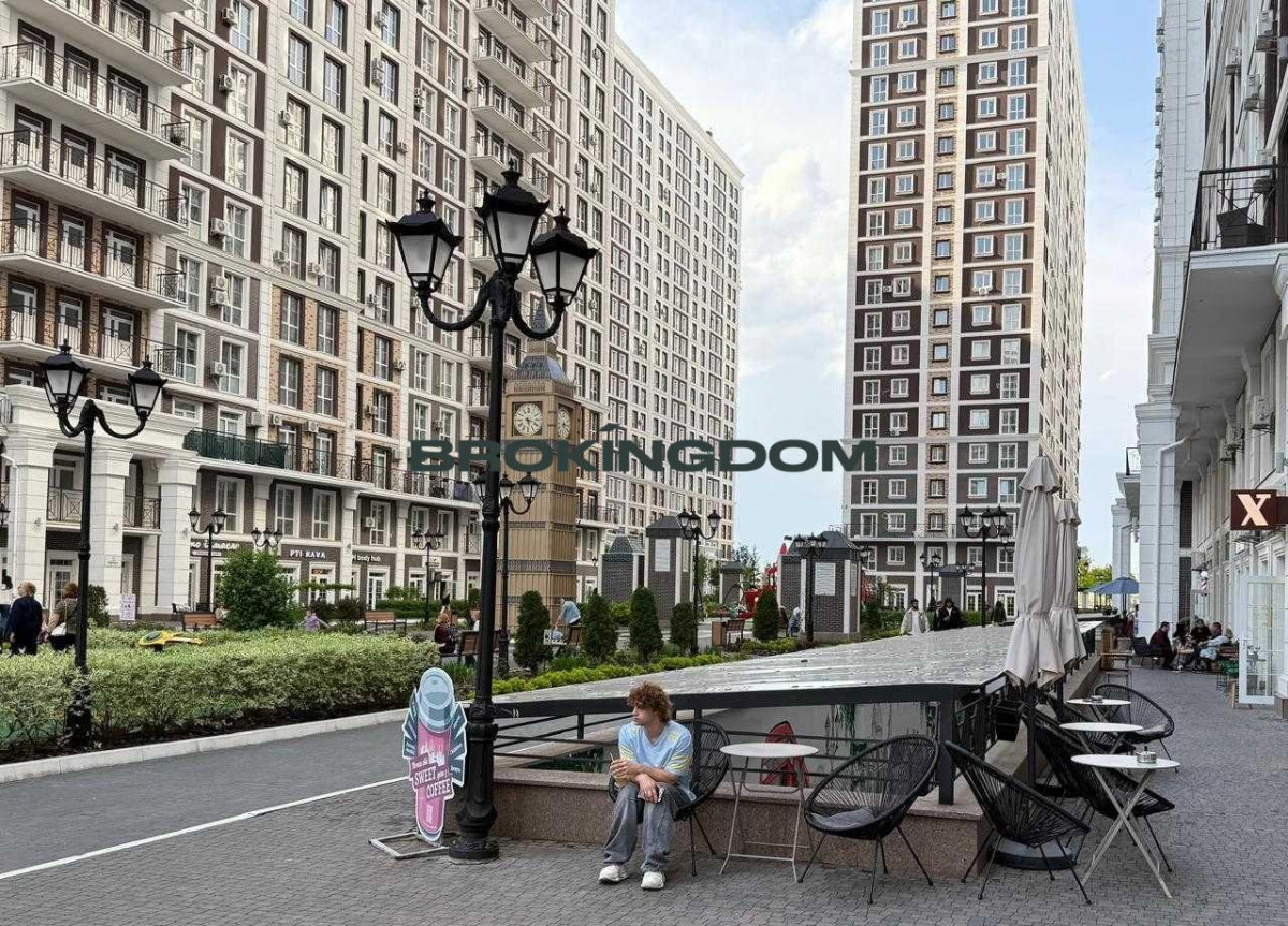 Будинок Лондон, 1-кімнатна квартира 41 кв.м, кухня - студіо та окрема спальня. Панорамні вікна з видом на Паркленд. Лічильники на опалення, воду та електроенергію. В комплексі власна котельня, в будинку три ліфта. Територію комплексу обслуговує охоронна компанія "SHERIF"
