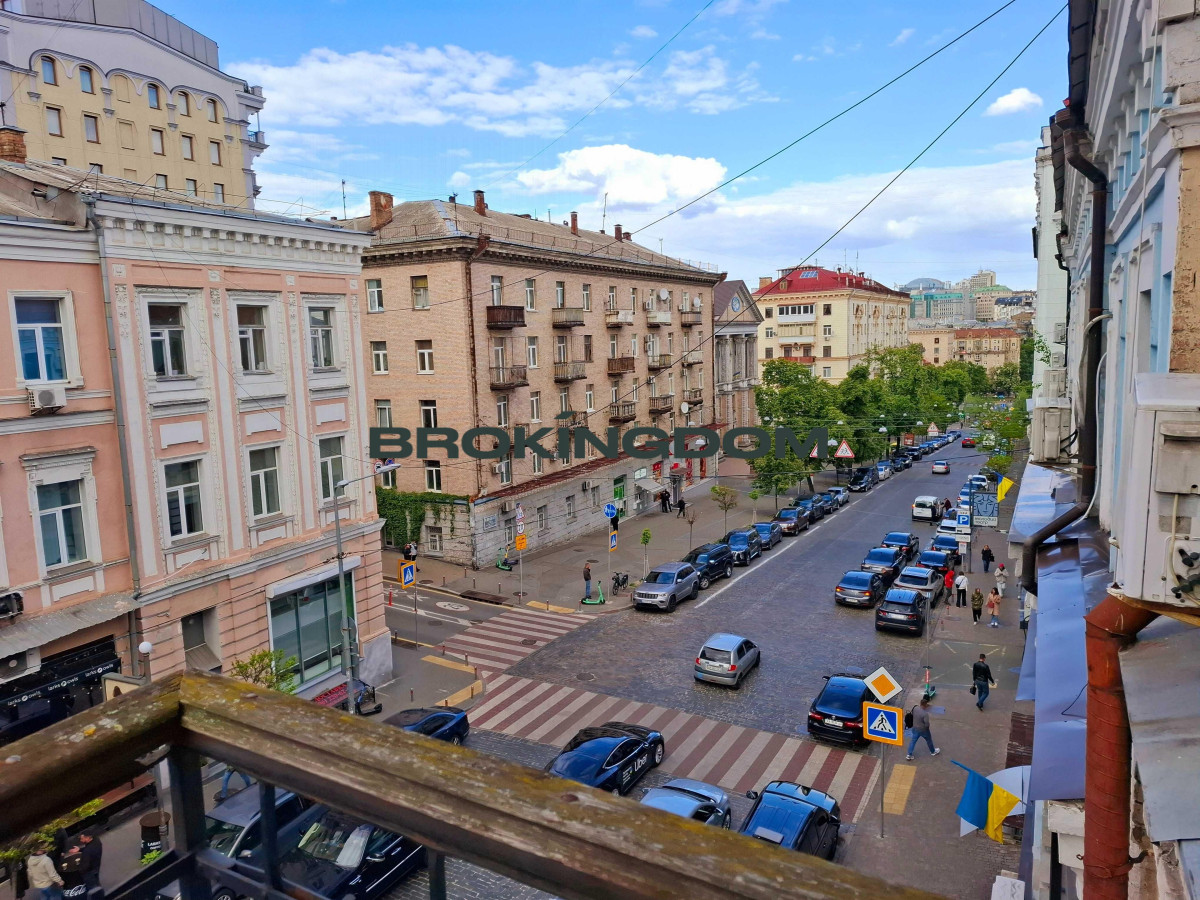 Дореволюційний триповерховий будинок в центрі Києва, квартира на третьому поверсі. Фасадне парадне з другим виходом у двір, без ліфта. Балкон та вікна в бік вулиці, неперевершений краєвид.