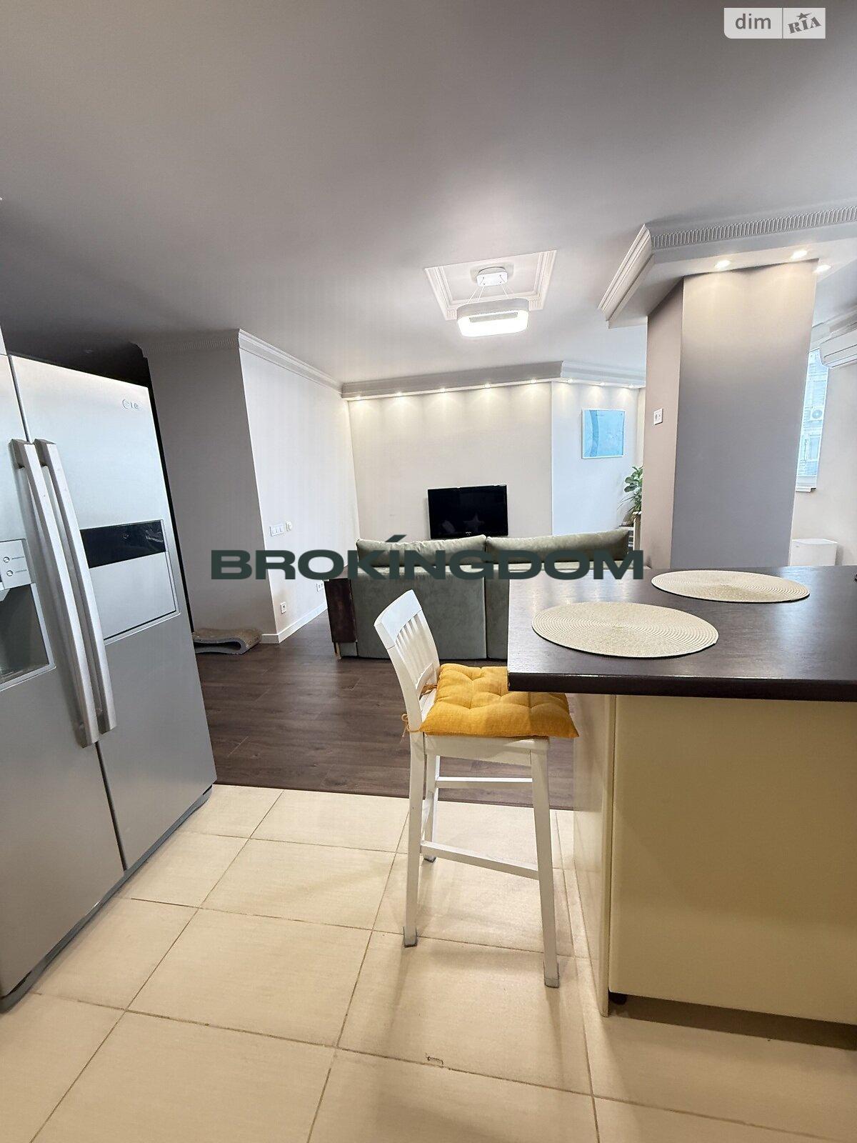 Кухня-вітальня з барною стійкою, вся техніка (посудомийна машина, духовка, варильна поверхня, витяжка, великий холодильник з льодогенератором, мікрохвильова піч).