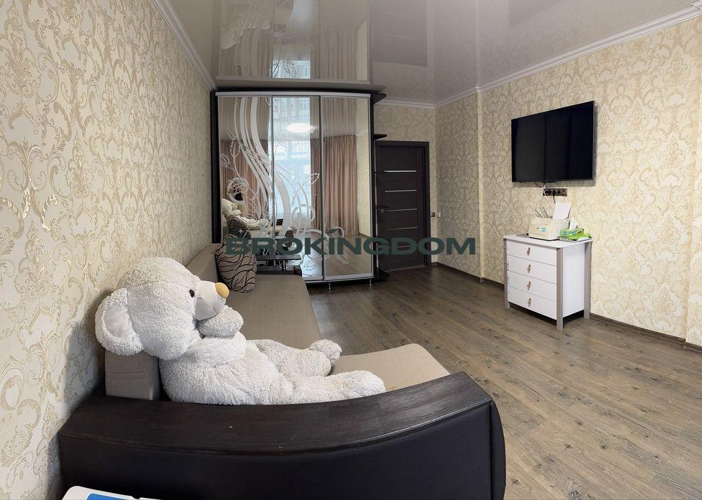 Вікна кухні виходять прямо на дитячий майданчик — ідеально для сімей із дітьми. З кімнати відкривається вигляд на тиху та охайну алею. Кімната велика площею 25 кв.м
