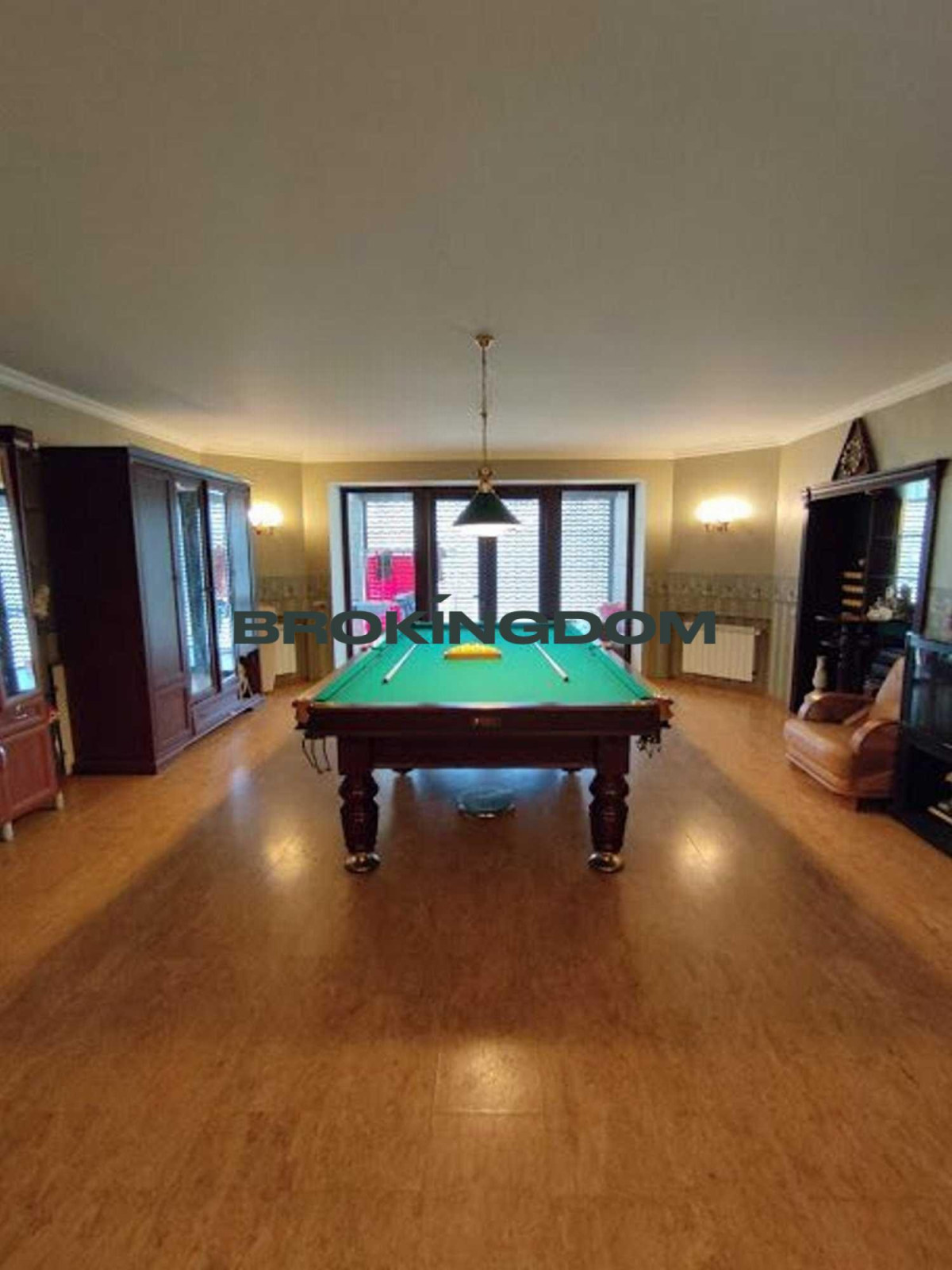 Цокольный этаж: бильярдная, баня с бассейном, топочная, винный погреб, терраса с выходом во двор.