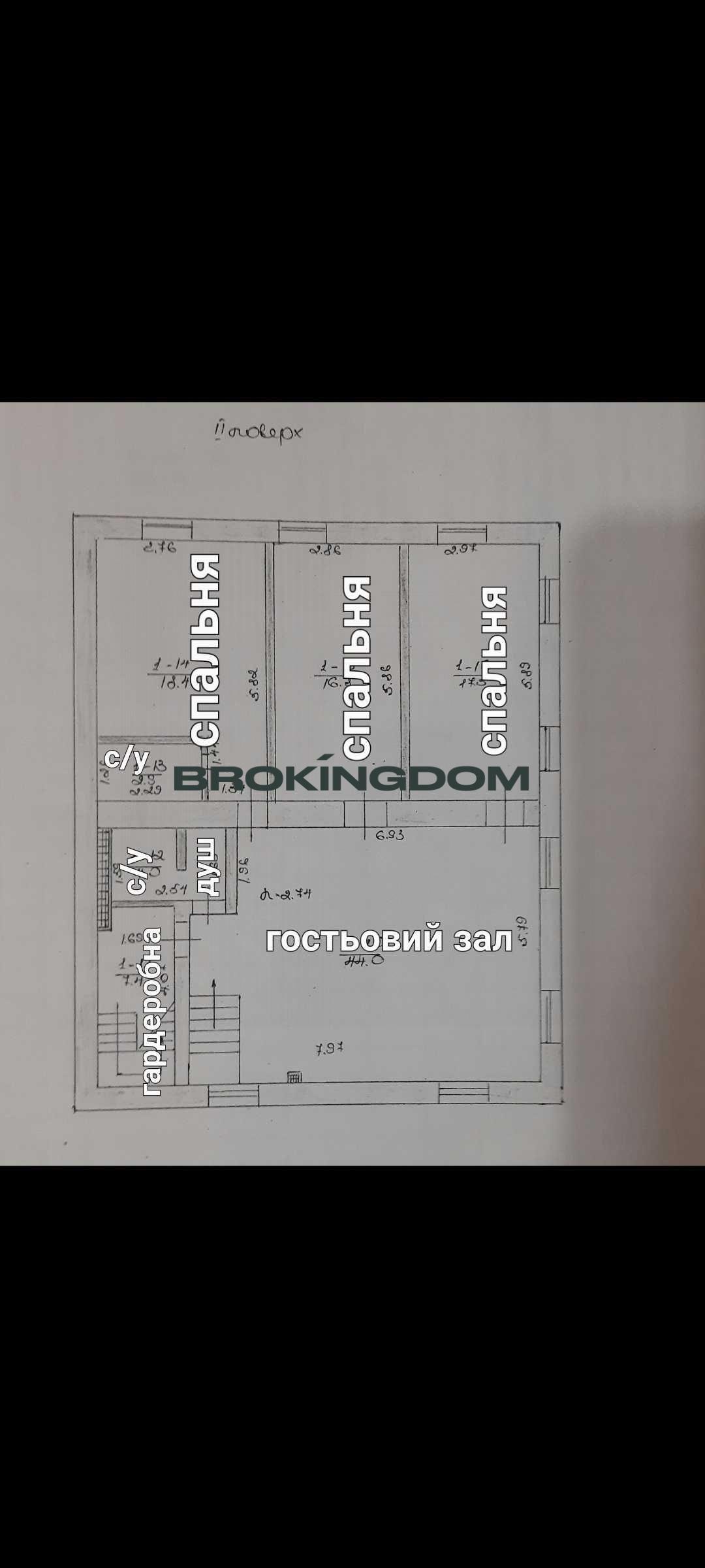 2 поверх 115кв.м. три спальні по 17кв.м, гостьова зала 45м., гардеробна, душ, 2 окремі санузли.