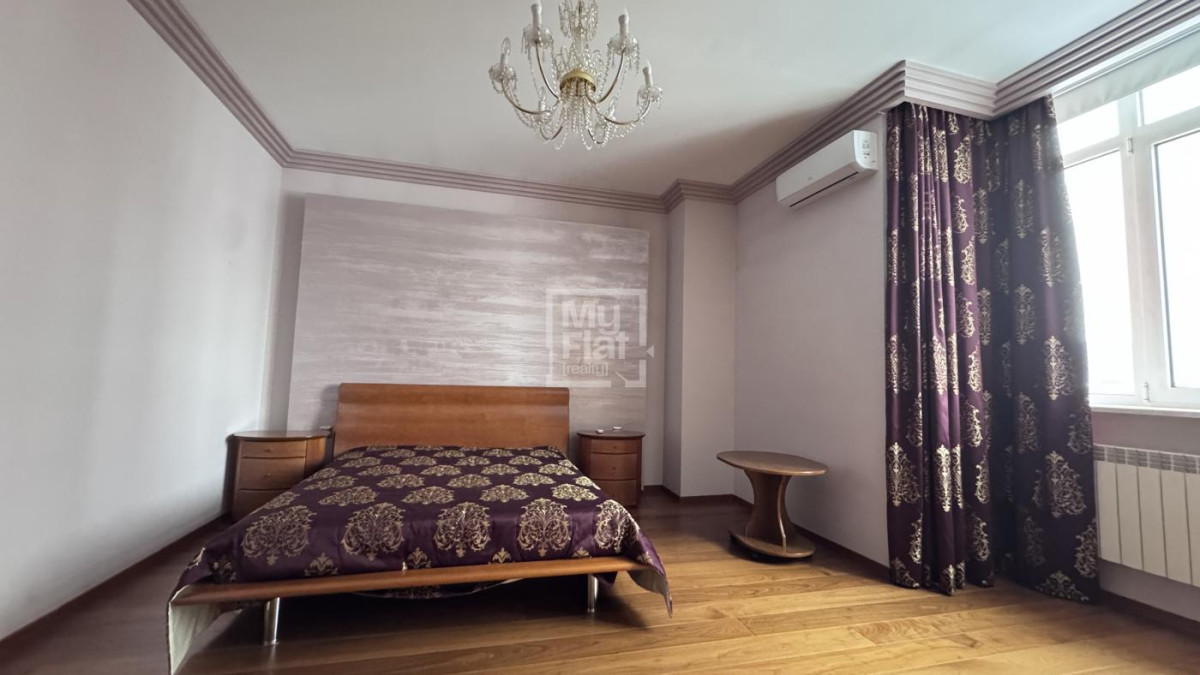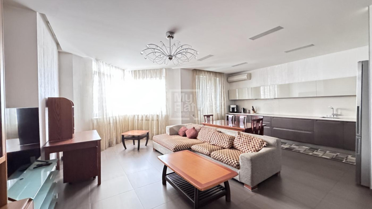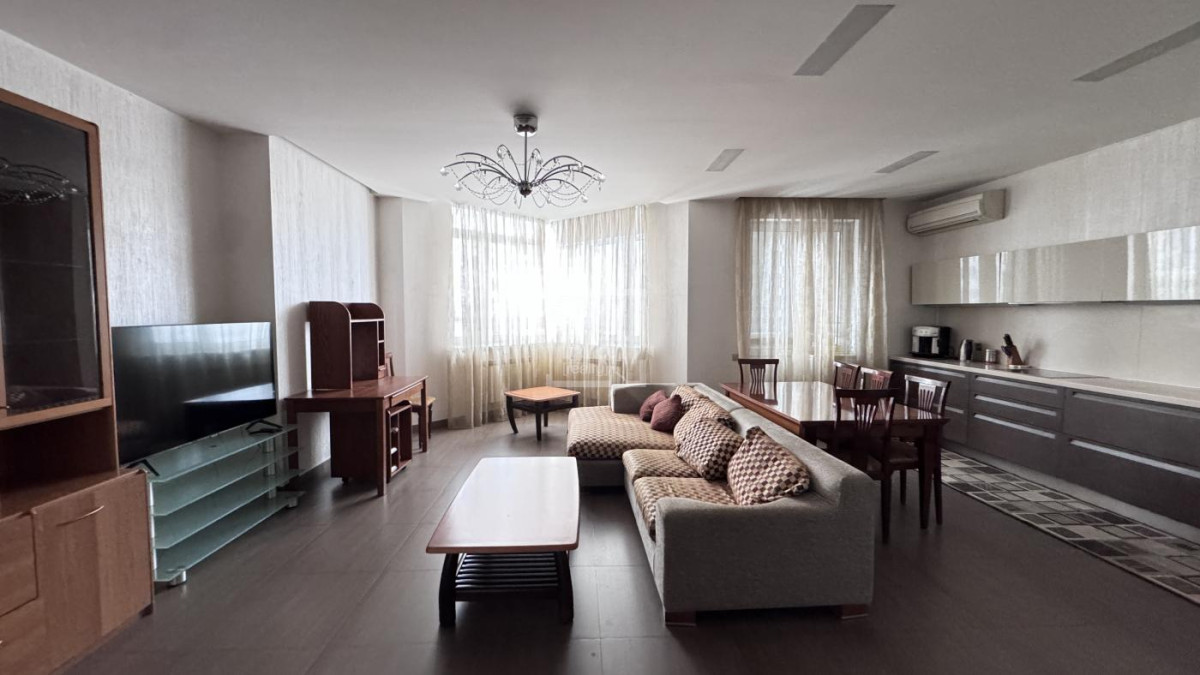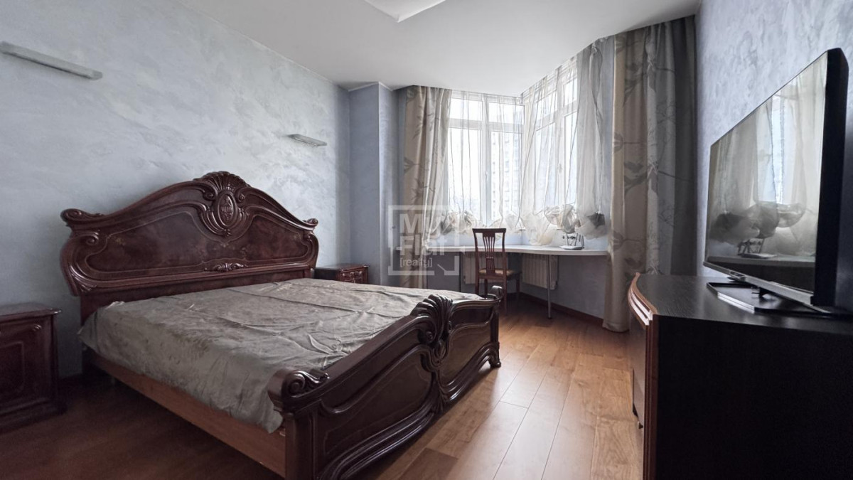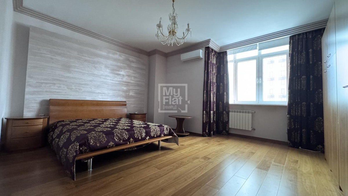 3-кімнатна квартира площею 102 кв. розташована на 7-му поверсі нового будинку. Виконаний ремонт, кухня студіо з вбудованими меблями та побутовою технікою, 2 мебльовані спальні , 2 с/в, душова кабіна, вбудовані шафи, закритий двір, охорона. Є паркінг.