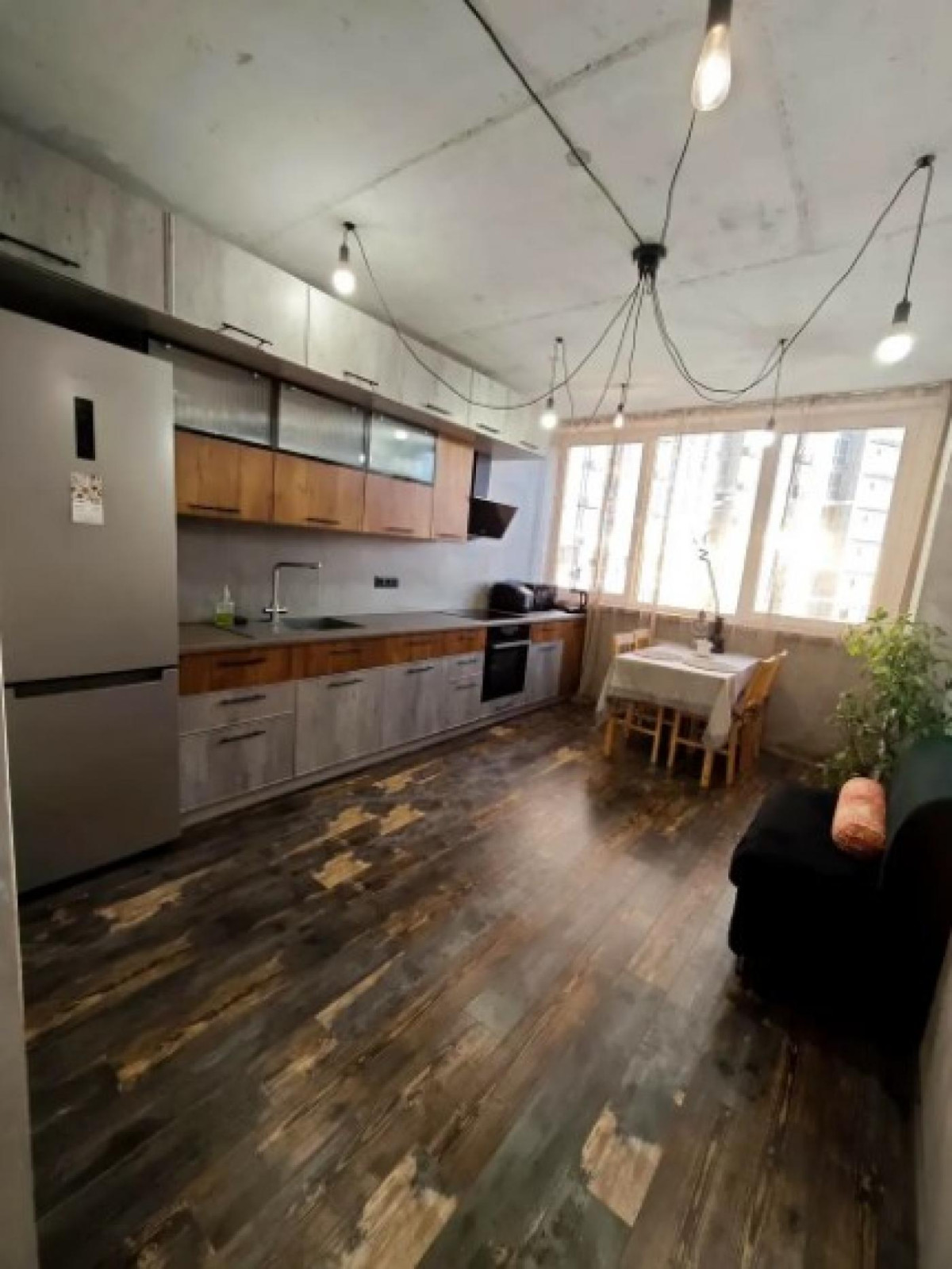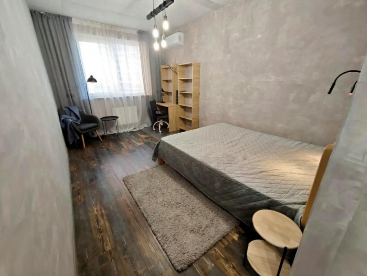 ЖК Лебединий, м. Харківська 5хв пішки, 4 поверх, 45 кв.м Квартира з дизайнерським ремонтом в стилі «лофт-гранж» Вбудована кухня з побутовою технікою: 2кам.холодильник, мікрохвильова піч, мультиварка, ел.чайник, індукційна плита, духовка, витяжка. Є посуд Кух.стіл 4 стільця, диванчик. Кімната: 2-х спальне ліжко з ортопедичним матрацом, столи/прикроватна тумба, робоче місце(стіл з поличками комп.крісло), мʼяке крісло столик торшер, кондиціонер. Велика гардеробна кімната!!! С/в- сумісний, бойлер, пральна машина. Коридор-прихожа: додаткова шафа відкритий простір з вішачками для верхнього одягу, стільчик/пуф. Вікна виходят на тихий двір.