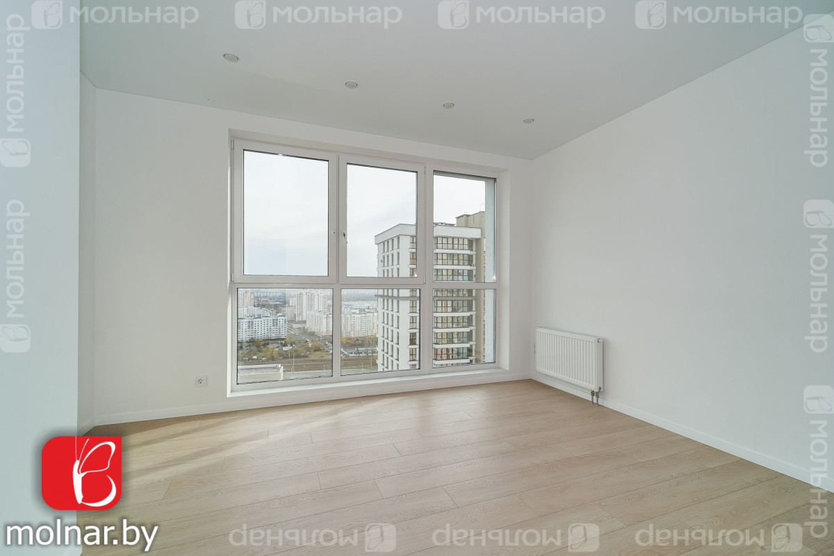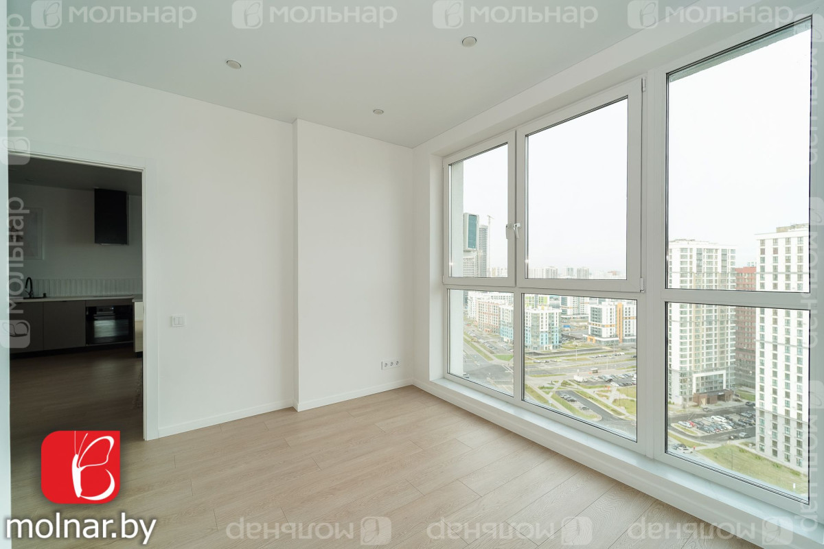 Трехкомнатная квартира с евроремонтом на 21‑м этаже дома «Венеция» в ЖК «Минск Мир» — отличное предложение для тех, кто ценит комфорт, стиль и панорамные виды.