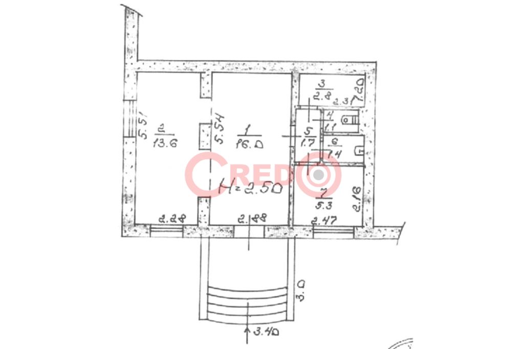 -висота стелі- 2.50 м