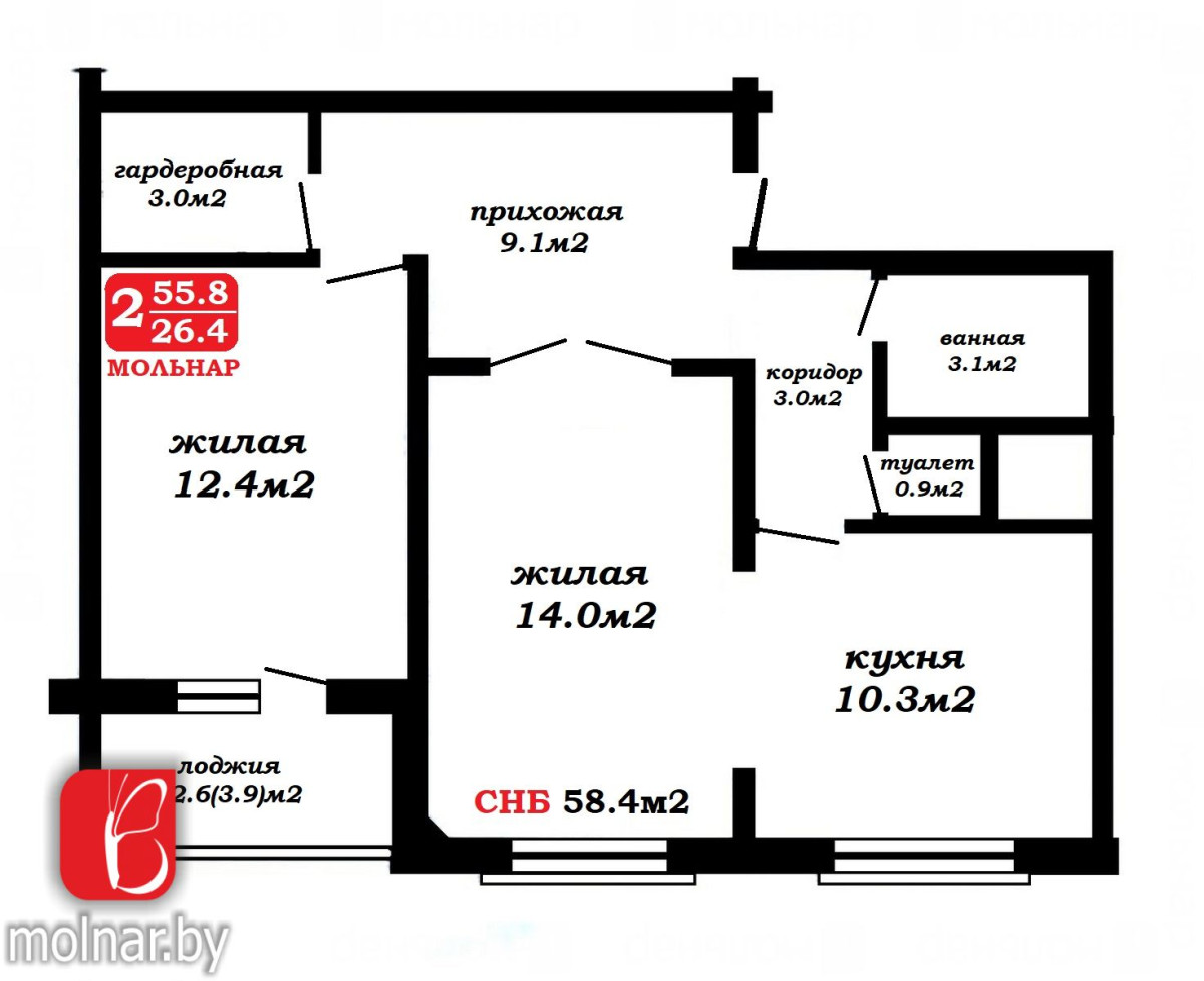 55.8 m²
