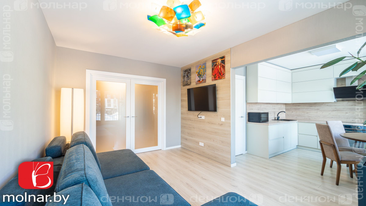 В квартире 2 жилых комнаты с большой кухней. Квартира продается с мебелью и техникой для комфортного проживания.