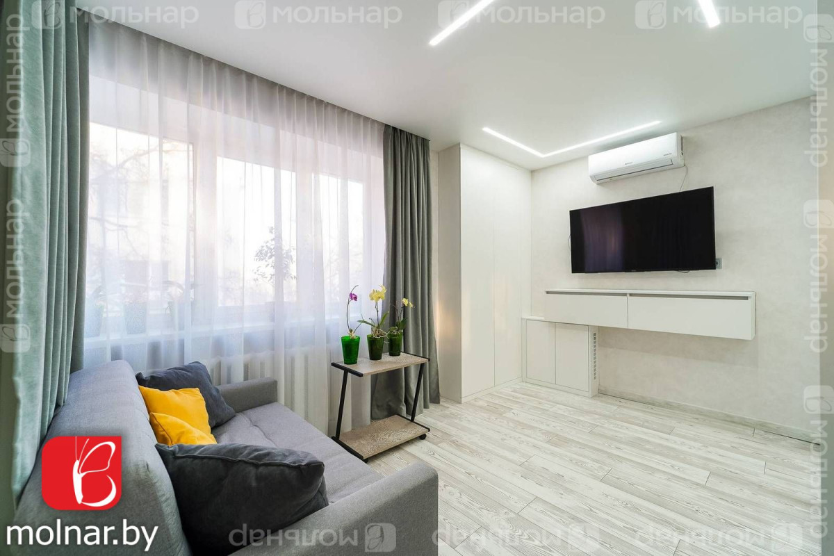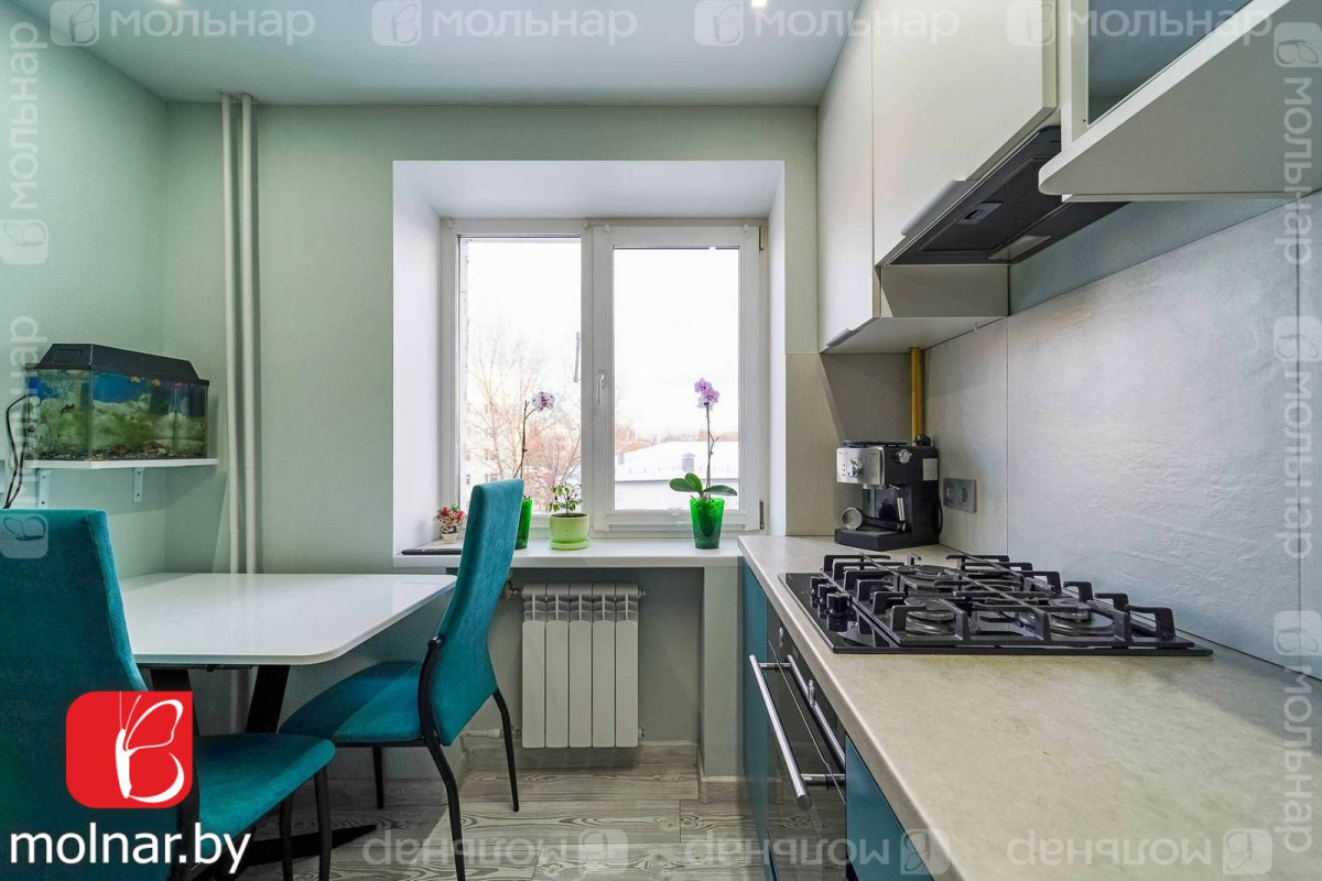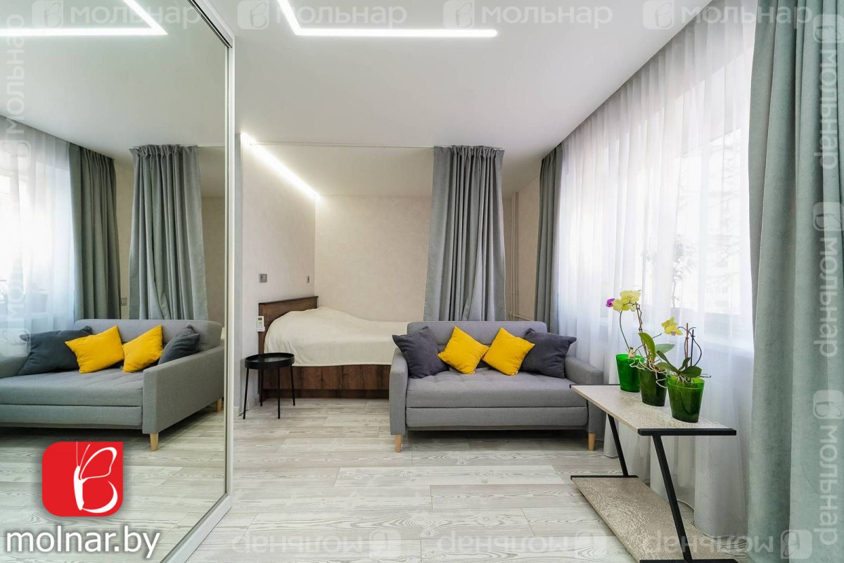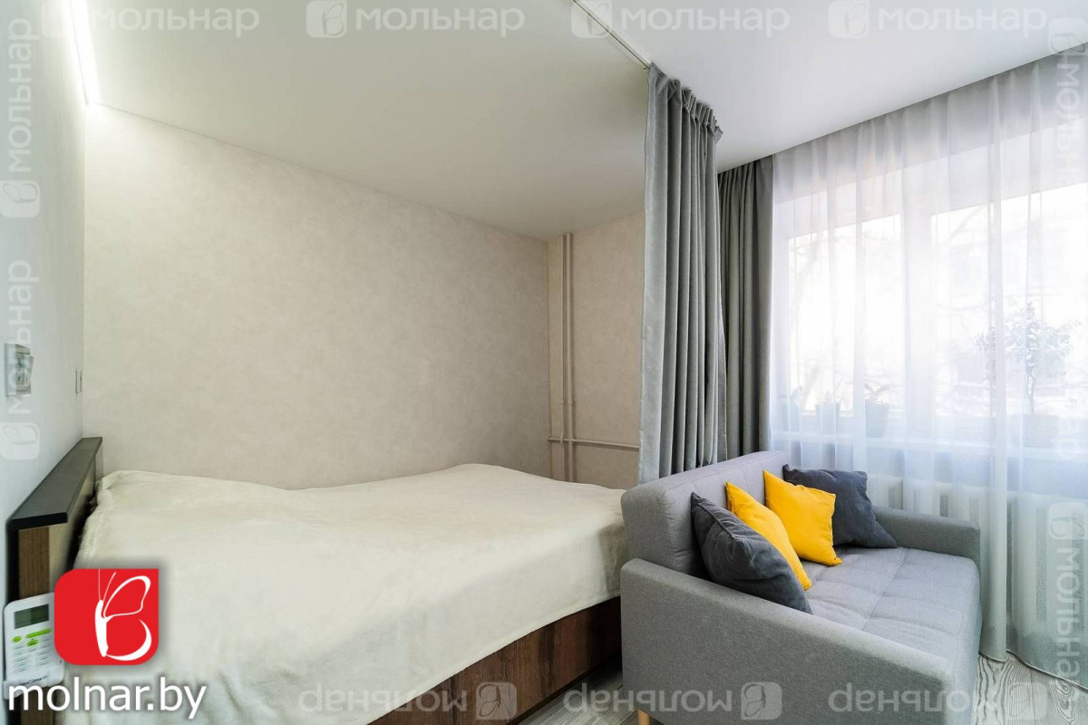 Уютная однокомнатная квартира по улице Максима Богдановича, дом 48. Расположена на четвертом этаже пятиэтажного жилого дома, с окнами, выходящими на восток и северо-восток.