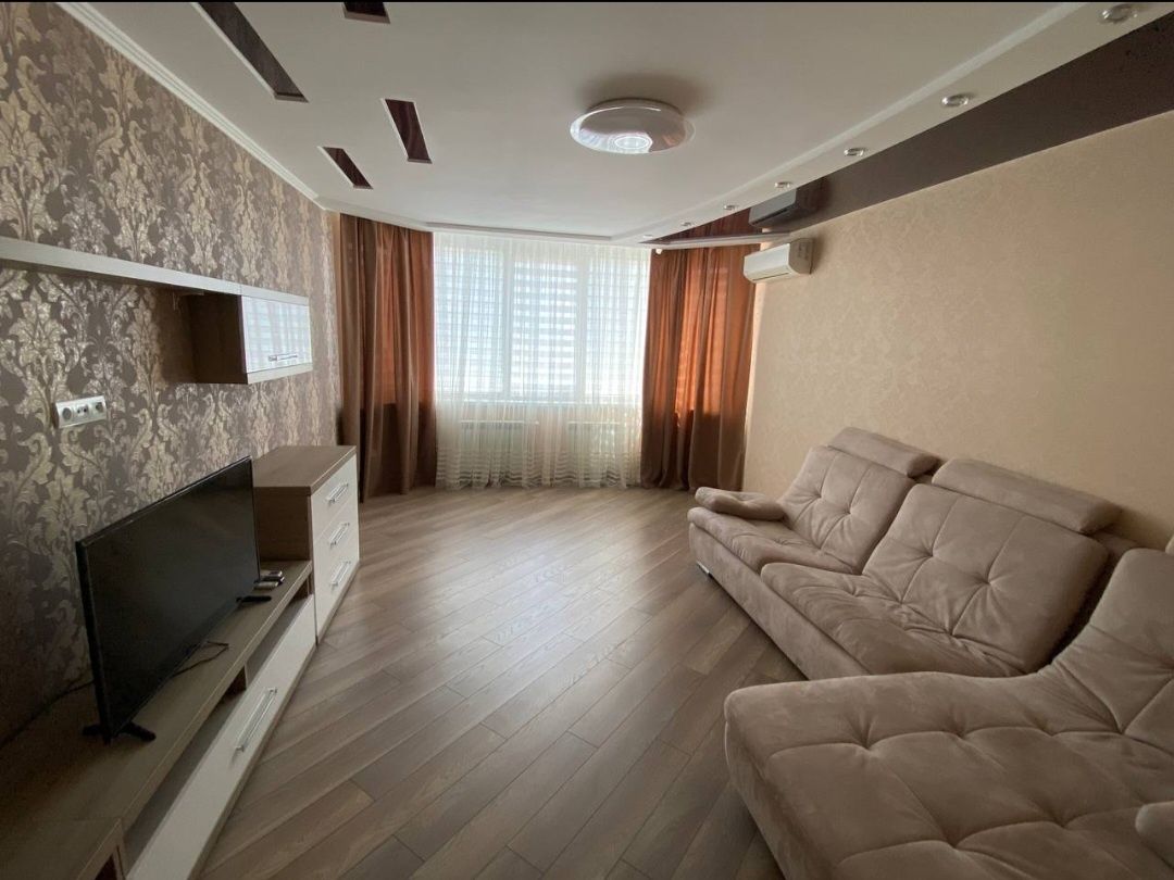 Квартира обладнана необхідними меблями та технікою ( 2-х спальне ліжко, диван,велика шафа-купе, тумби, комоди, окрема шафа на балконі, 2 телевізора, посудомийка, пральна машина, холодильник, духова шафа, бойлер, ванна, пилосос, мікрохвильова піч, чайник,варильна поверхня, витяжка, обідній стіл, тепла підлога у 3-х зонах, кондиціонер). Автономність: прибудинковий генератор (працює ліфт, опалення, водопостачання). Інфраструктура: м. Осокорки, 10 хв. Фора, Новус, Нова Пошта.