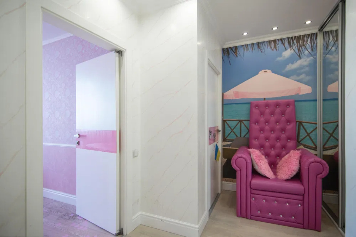 Дизайнерський ремонт, ручки дверей, шкафів на кухні, вимикач світла, змішувачі у ванній, оздоблення стінки у ванній, ліжко і крісло камінням Swarovski, техніка холодильник , посудомийна і пральна машинка Gorenje, увігнутий екран телевізору Samsung. Ліжко і душ, стеля і драбина з підсвіткою LED. Кухня з системою BLUM. Дитяча кімната меблі CILEK.