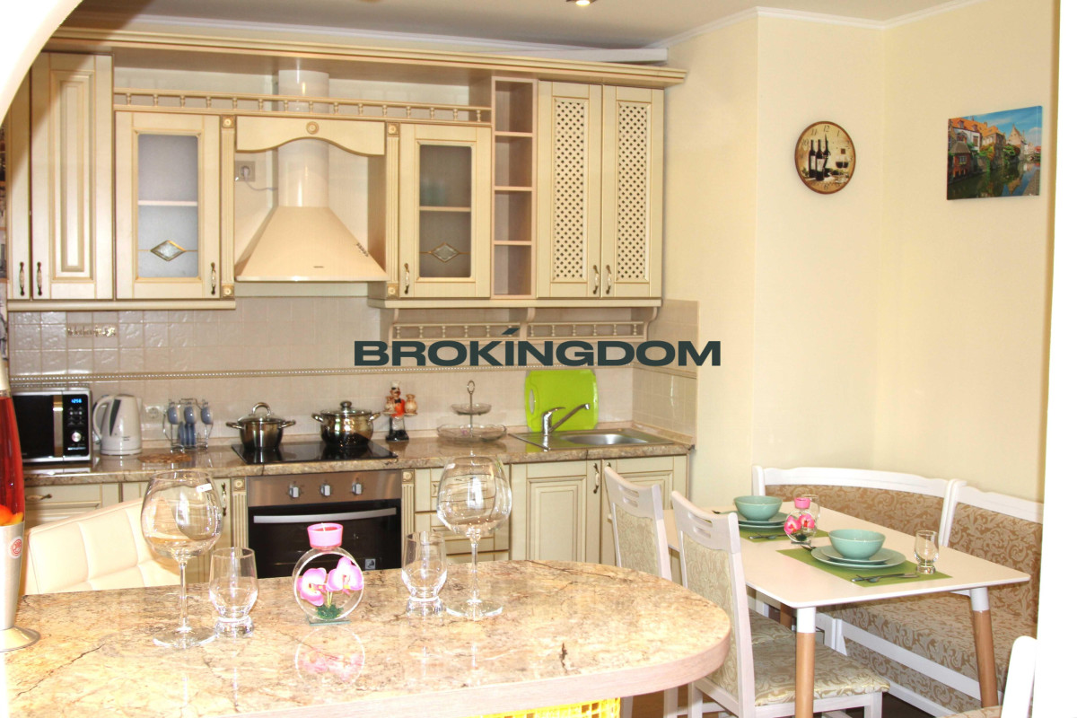 У квартирі якісний ремонт, нові меблі, сантехніка. Є кондиціонер. Кухня обладнана необхідною технікою, є духовка, варильна поверхня, витяжка, холодильник, мікрохвильова піч, Бойлер, пральна машина. Великий балкон