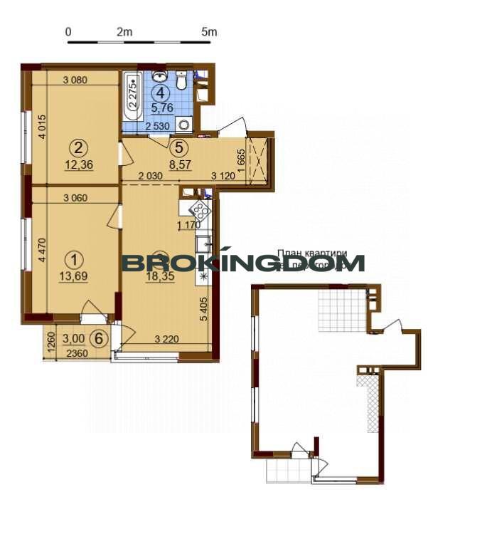 Кімнати: 13,69 м та 12,36 м — ідеальні для спальні та дитячої або кабінету.