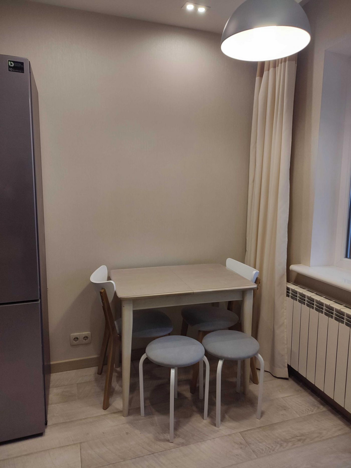 1-кімнатна квартира з окремим плануванням. Вул Михайла Гришка, буд. 10, 9 поверх у 18 поверховому будинку. Загальна площа 38,7 м кв. кімната 17,8 кв. м, кухня 8,4 кв. м, ванна кімната 2,6 кв м, санвузол 1,0 кв м, коридор 4,8 кв. м, дві лоджії 8,2 кв м. Матеріал стін та перекриття- залізобетон. В квартирі є шафа-купе і три вбудовані шафи, ліжко, стіл кухонний, стіл комп’ютерний, крісло, стільці, кухонна мебель, холодильник, пральна машина, два кондиціонера, вай фай, бойлер. В будинку є альтернативні джерела електроенергії. При вимкнутому світлі працює ліфт і опалення. До метро 5 хв. пішки. Є поруч ТРЦ, супермаркети, Епіцентр, Метро, ресторани, дитячі майданчики, школи, дит садочки