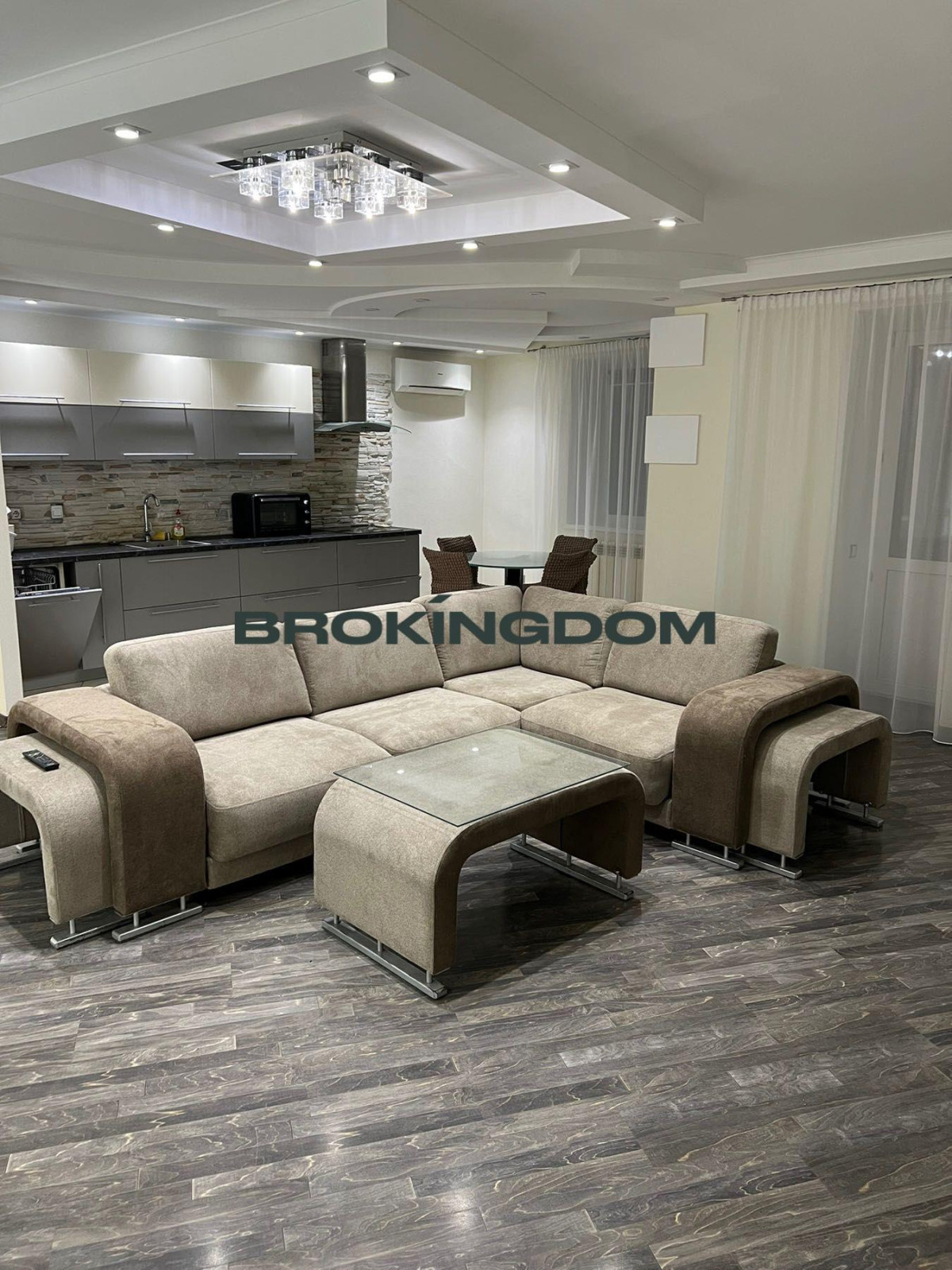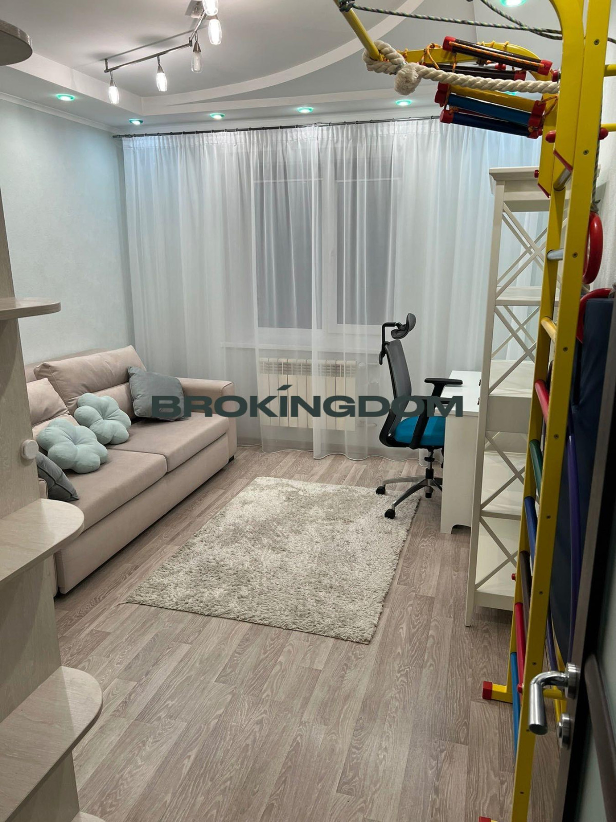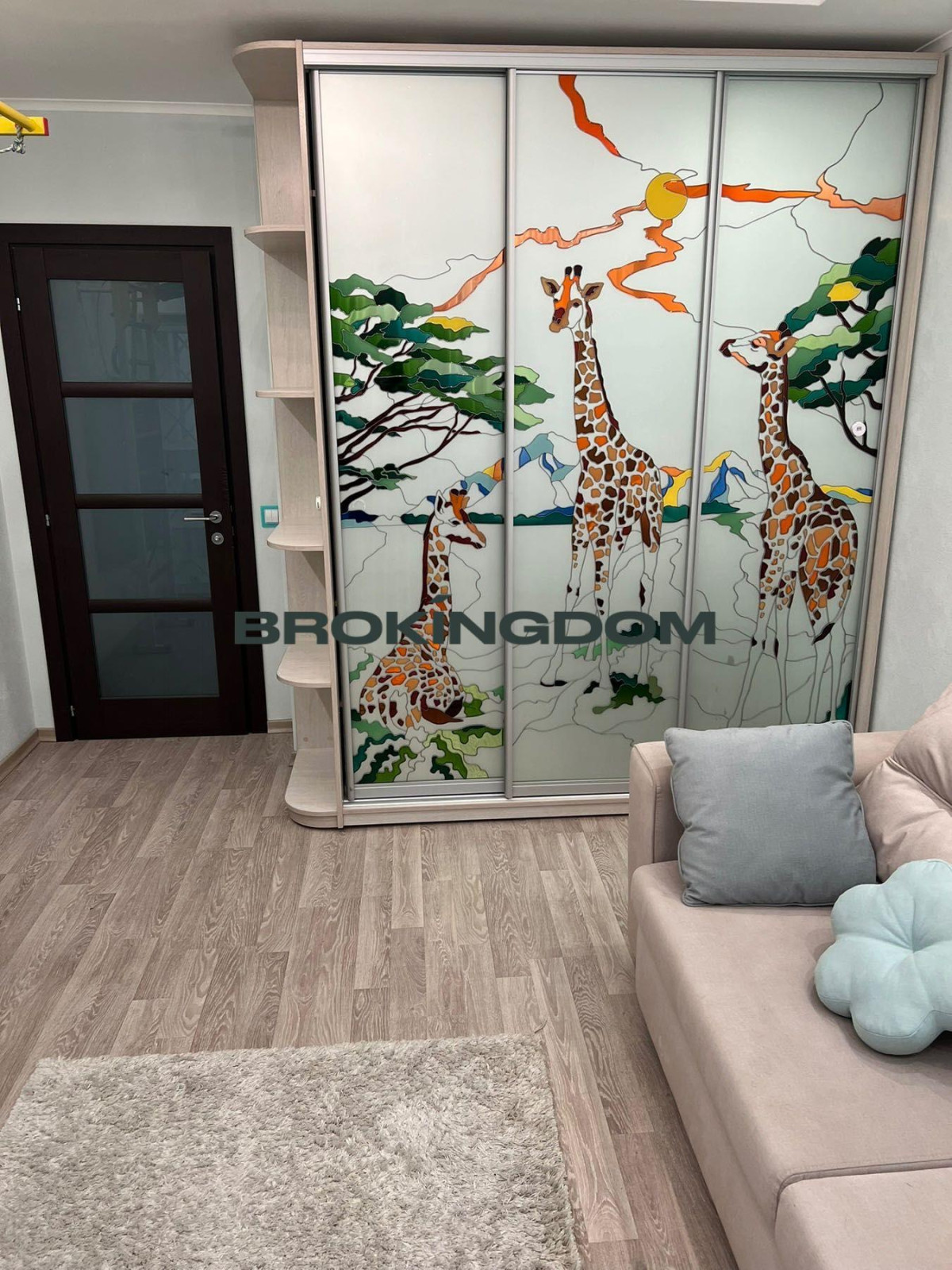 Планування зручне для сім’ї: об’єднана кухня-студіо формує головний простір квартири для спільного часу та прийому гостей. Дві окремі спальні забезпечують тишу й приватність — одна підійде під батьківську, інша облаштована як світла дитяча кімната для навчання та відпочинку. Додатково є гардеробна та засклений балкон.