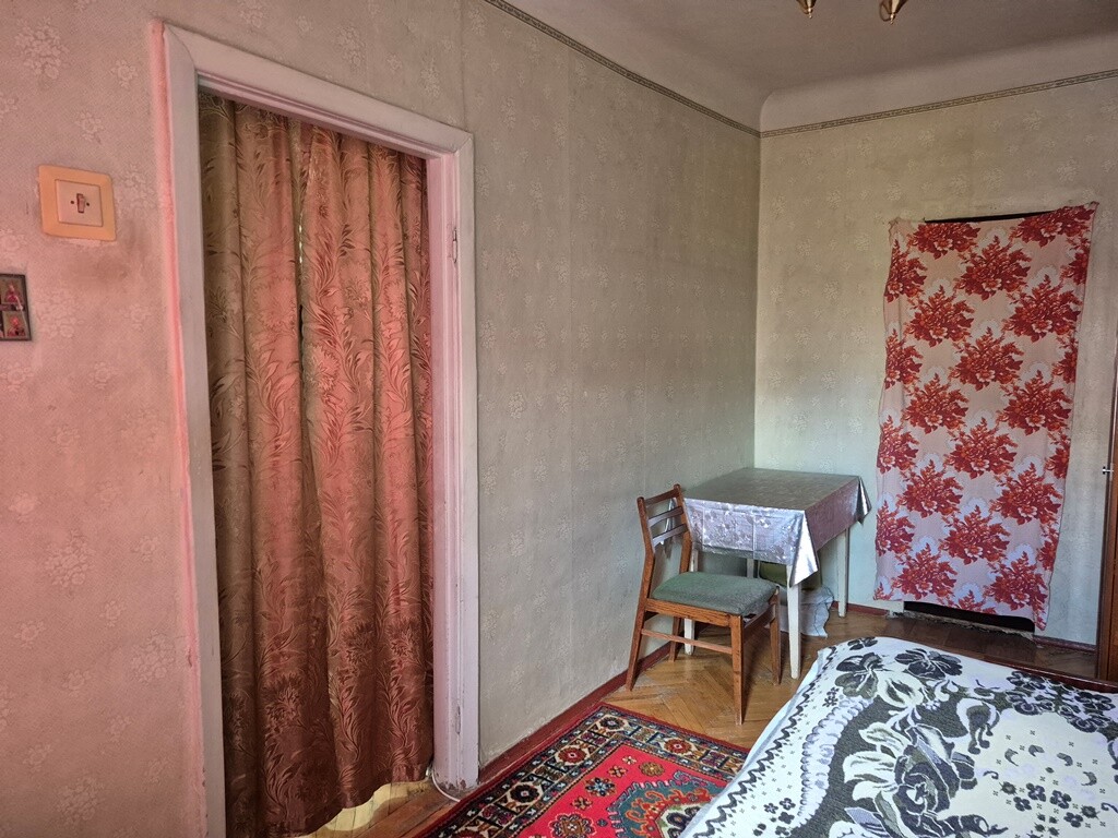 Она расположена на 5 из 5 этаже кирпичного дома, и утром сюда первыми заглядывают лучи солнца, а небо и кроны каштанов как на ладони.