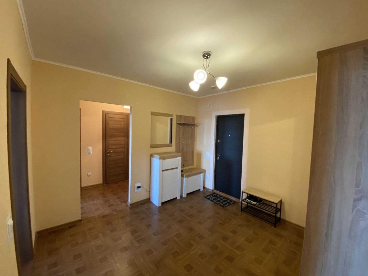 Квартира по-домашньому комфортна, повністю мебльована (кухня, столи, стільці, дві шафи, вітальня, передпокій), і дві засклені лоджії.