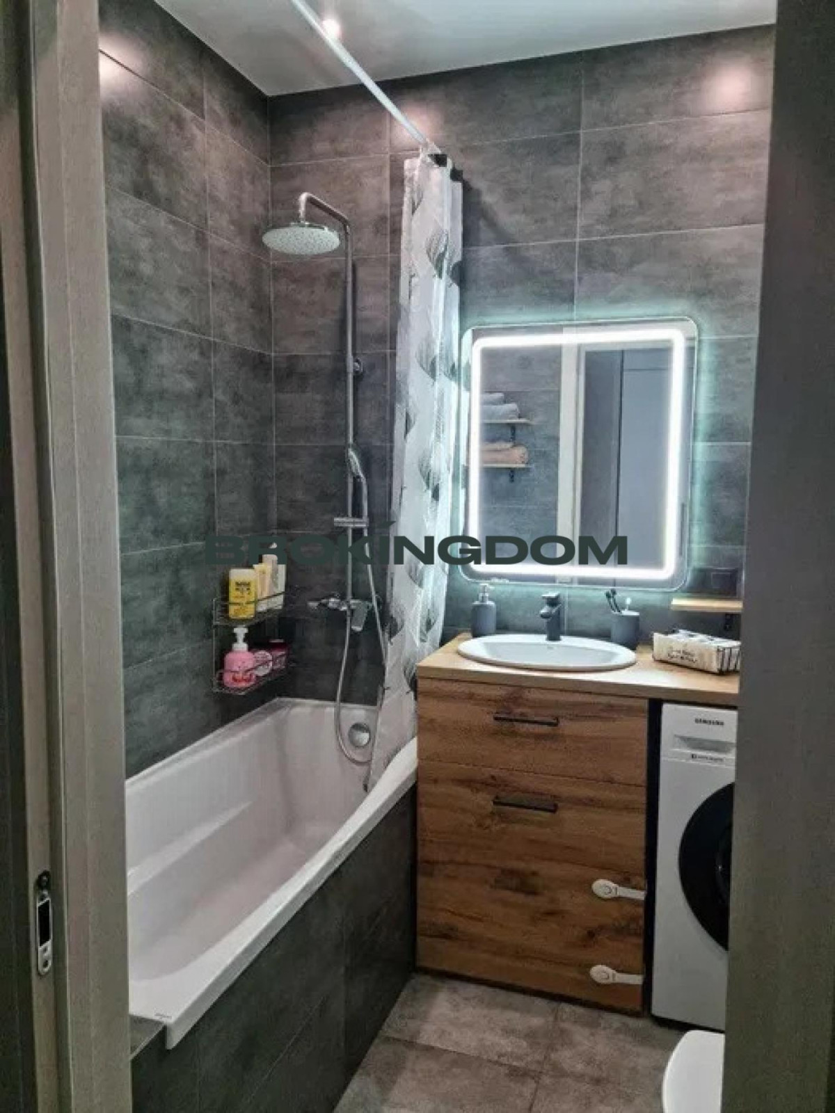 Ванна кімната: якісна сантехніка, душевий гарнітур, меблі під замовлення, плоский бойлер Atlantic 50л та пральна машина Samsung.