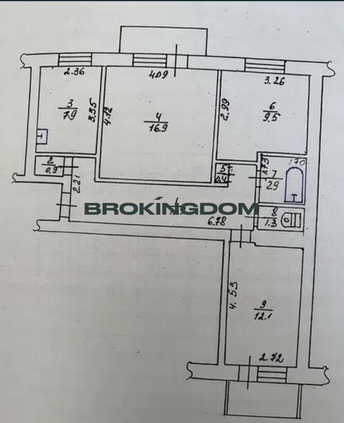кухня 7,9 кв.м, 3 окремі кімнати, 2 балкона, 1 комора, 1 роздільний санвузол, передпокій.
