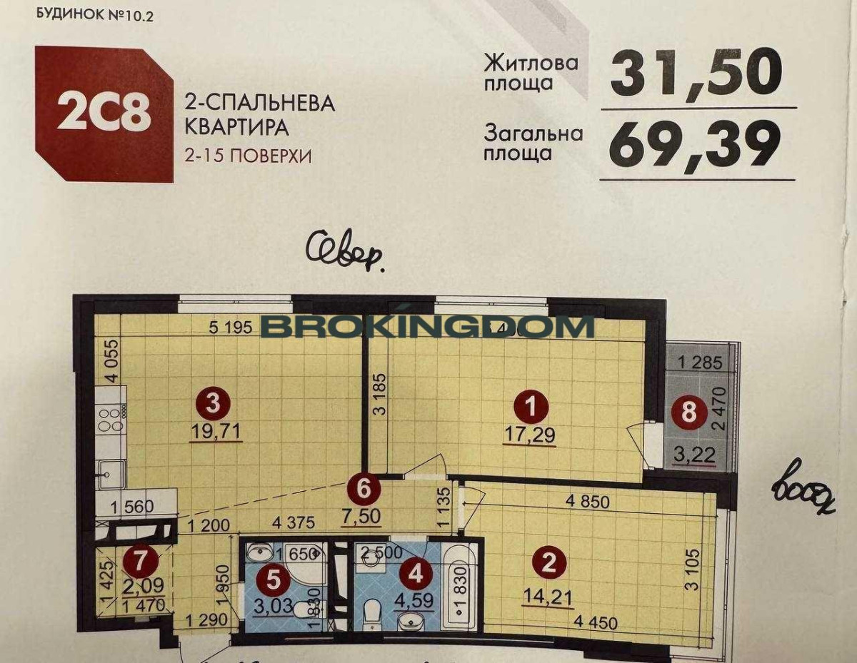 Будинок 15 поверхів, квартира на 8 поверсі.