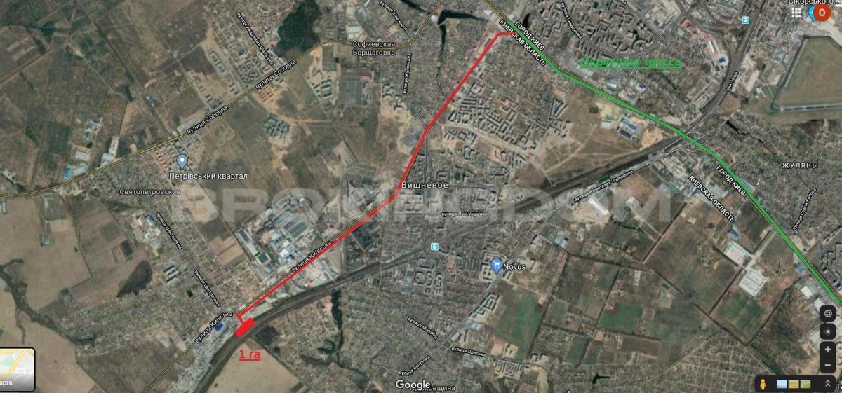 Продам ділянку 1 га у промисловій зоні с. Святопетрівське (вул. Київська), Києво-Святошинського району, Київської області.
