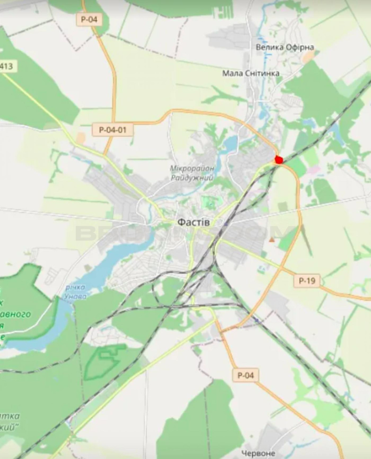 Розташована на окружній м.Фастів (на території Малоснітинської сільської ради), з інтенсивним автомобільним трафіком до гранітного кар'єру.