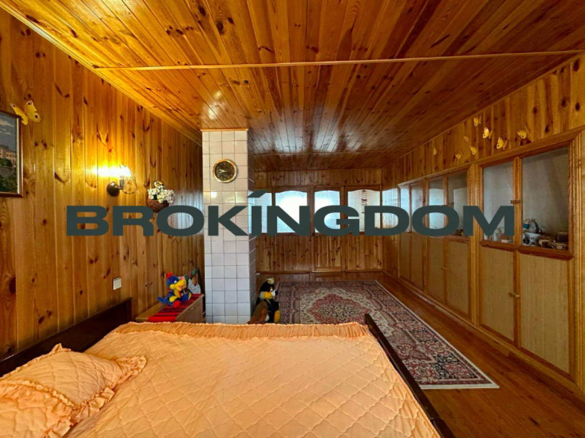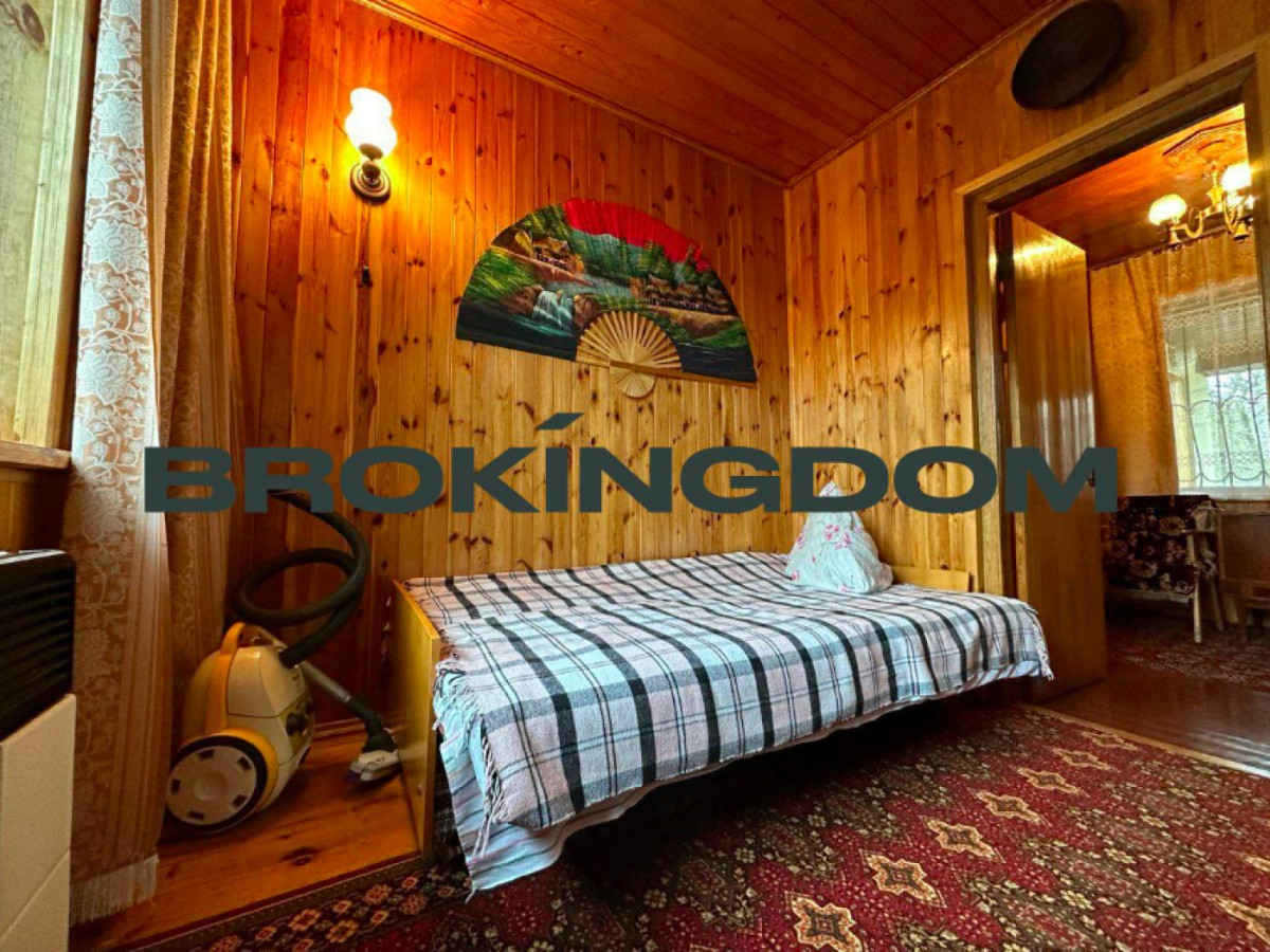 Будинок складається з двох поверхів, де перший поверх має три окремі кімнати, а другий - велику спальню з вбудованими шафами, що забезпечує достатньо місця для всієї родини. Все внутрішнє оздоблення виконано з дерев'яної вагонки, що надає оселі затишок та неповторний шарм.