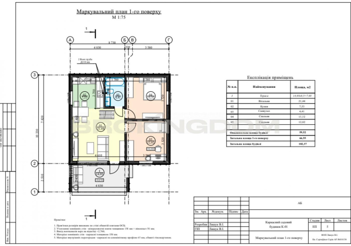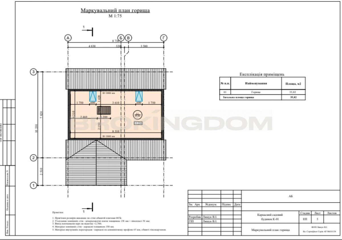 Фундамент: монолітна плита 250 мм;