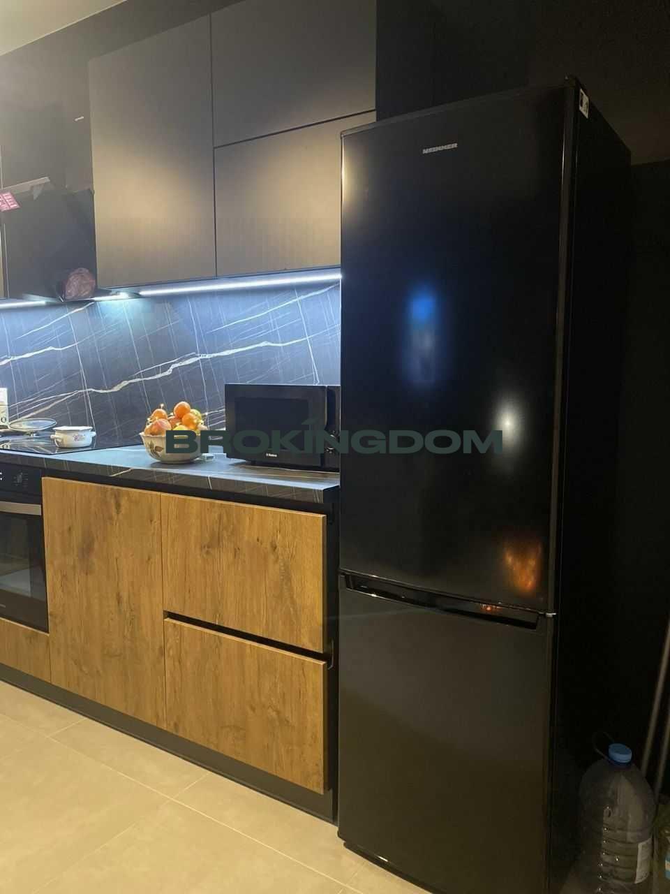 Кухня оснащена всіма необхідними елементами: плита, духовка, мікрохвильовка, холодильник. Робоча зона кухні освітлена вбудованим підсвічуванням, що створює затишок і комфорт під час готування. У вітальні встановлено камін, який створить затишну атмосферу і забезпечить тепло в будинку, навіть якщо немає електрики. Сходи обладнані сучасним освітленням. Мансардний поверх оздоблено натуральним деревом.