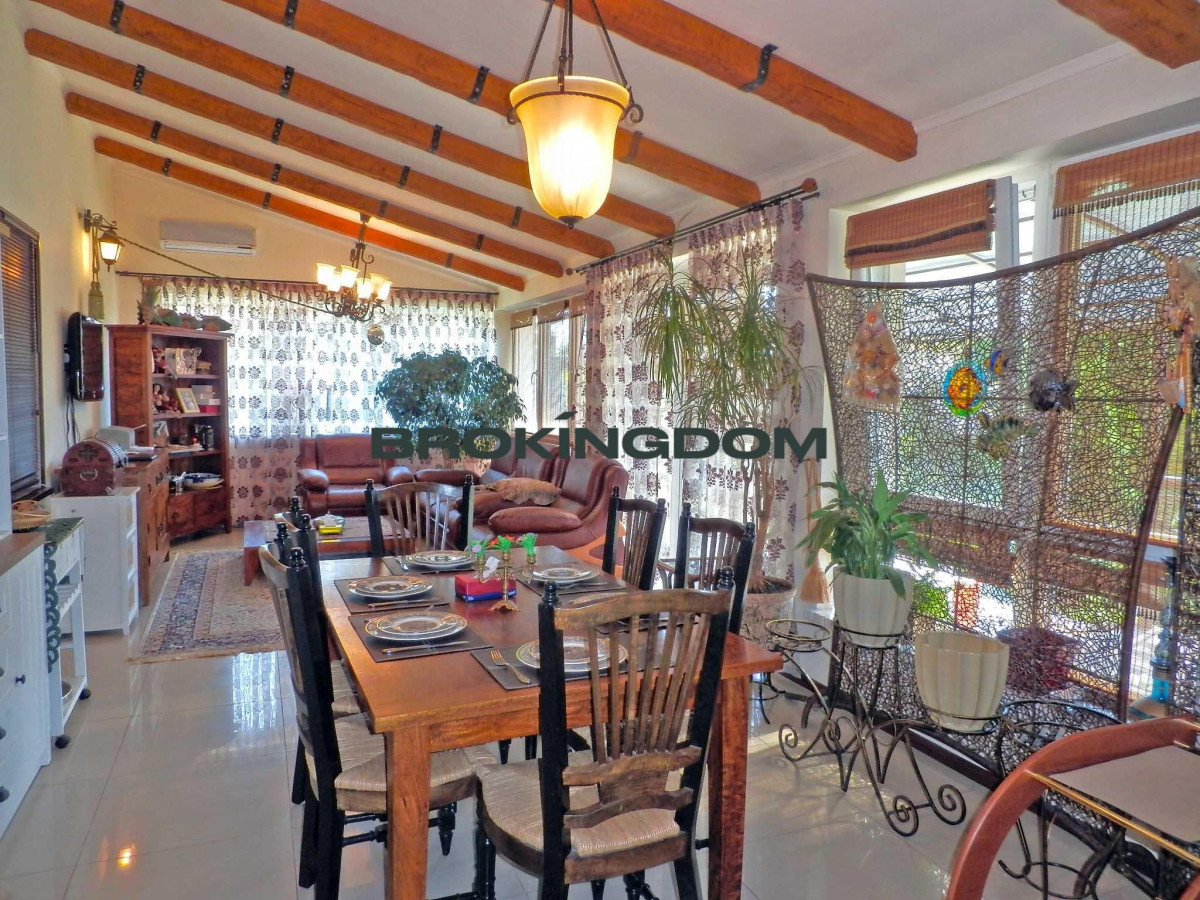1 этаж: гостиная с КАМИНОМ, кабинет (или спальня), кухня с выходом на зимнюю ТЕРРАСУ со столовой (с отоплением, кондиционером), ТЕРРАСА открытая, БАССЕЙН, САУНА (электр.), санузел (душ, туалет). Отдельный вход сбоку дома в техническое помещение (газовый 2-х контурный котел, фильтрация воды, .).