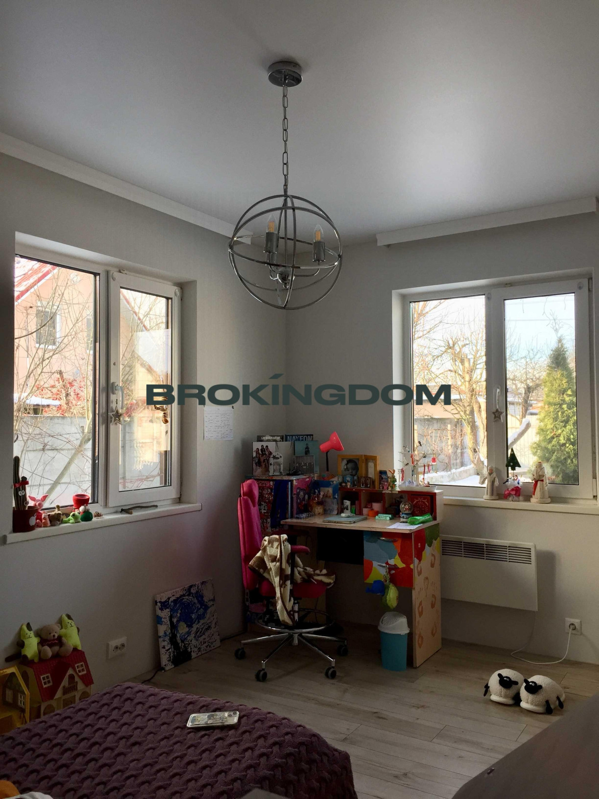 З меблів: шафа купе Hommie Interior, диван Hommie Interior, стіл, стільці, підліткове ліжко Doichman, письмовий стіл, підліткове ортопедичне крісло Kulik System, диван-ліжко Blest (потрібна перетяжка після кота), в кабінеті стіл і крісло.