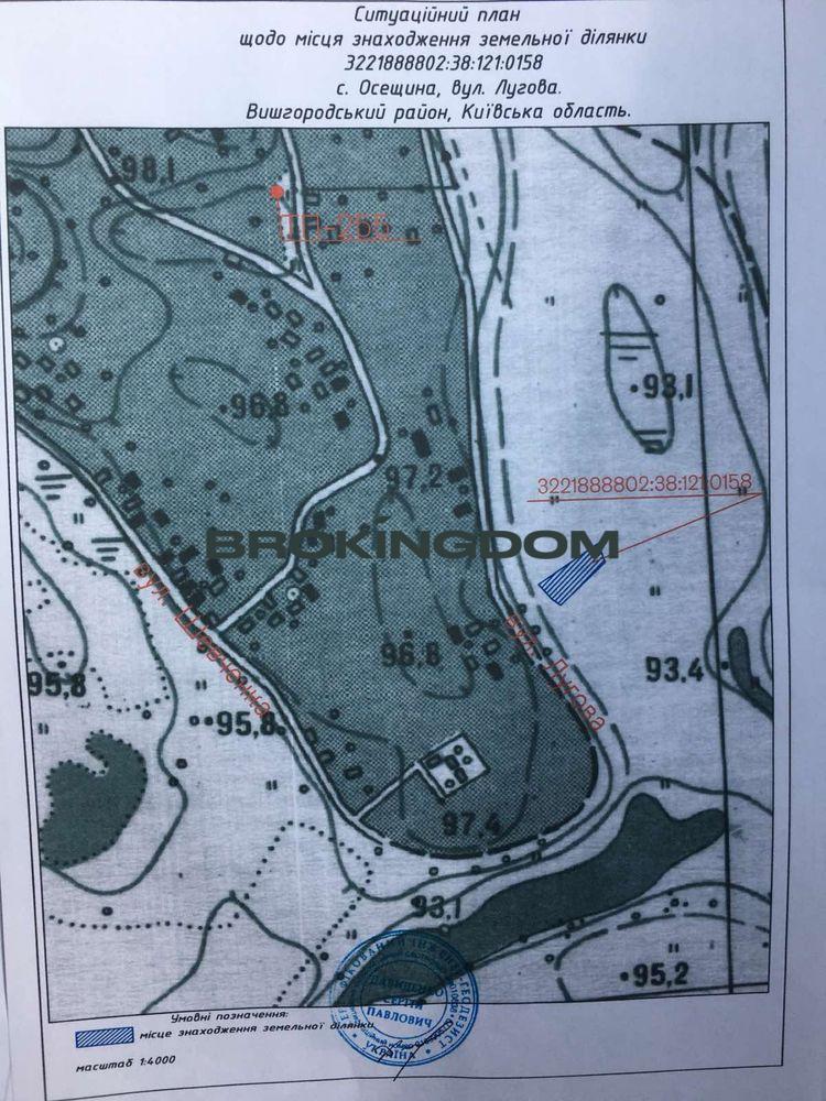 Продається земельна ділянка 12 соток в с. Осещина по вулиці Лугова. Ділянка під будівництво будинку, зроблений будівельний паспорт. Ідеально рівна ділянка. Підведена електроенергія 3 фази 10 кВт. Поруч з ділянкою газова труба, можливе підключення в перспективі. На ділянці розміщений металевий гараж.