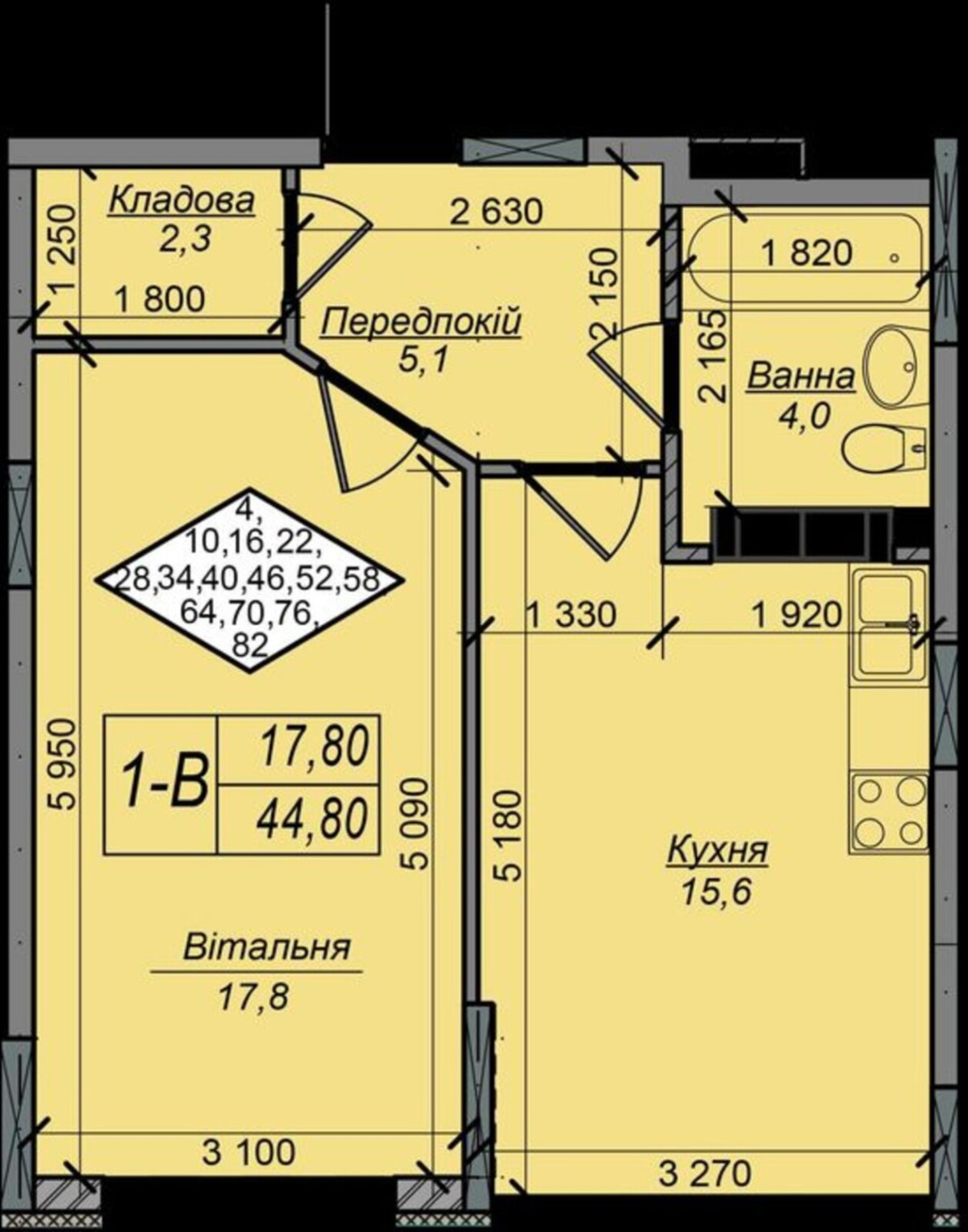 1-кімнатна 44,8кв.м(переуступка) ЖКНові Теремки, 1 кімнатна квартира в ЖКНові Теремки-площа 44,8кв.м, будинок 16 в 4 черзі на 12 поверсі, буде введено в кінці 2026р..Переуступка