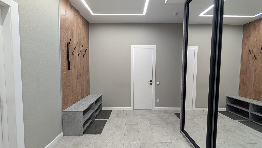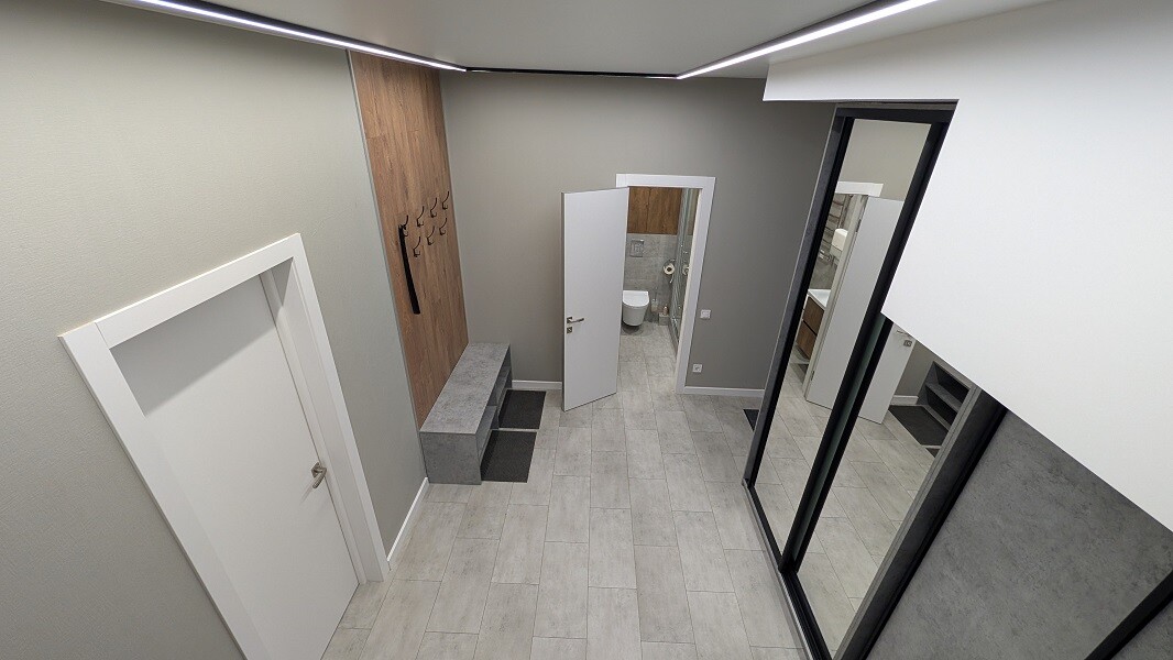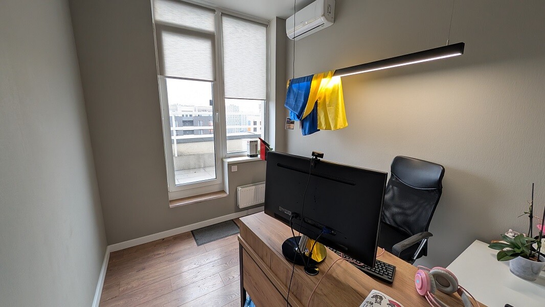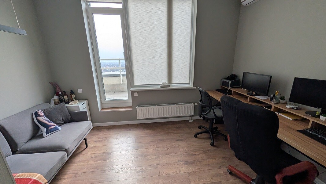 Сучасний дизайнерський ремонт виконаний з використанням якісних матеріалів, продумане зонування дозволяє ефективно організувати робочі процеси, а панорамні вікна відкривають захоплюючий вид на Київ, який надихає щодня.
