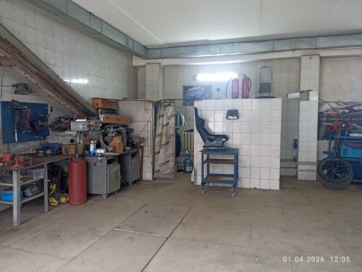 Центральная часть города, ворота 3м на 3м. Высота 3.5м. Есть два подъемника, яма, вода, 380. Плюс коммунальные.