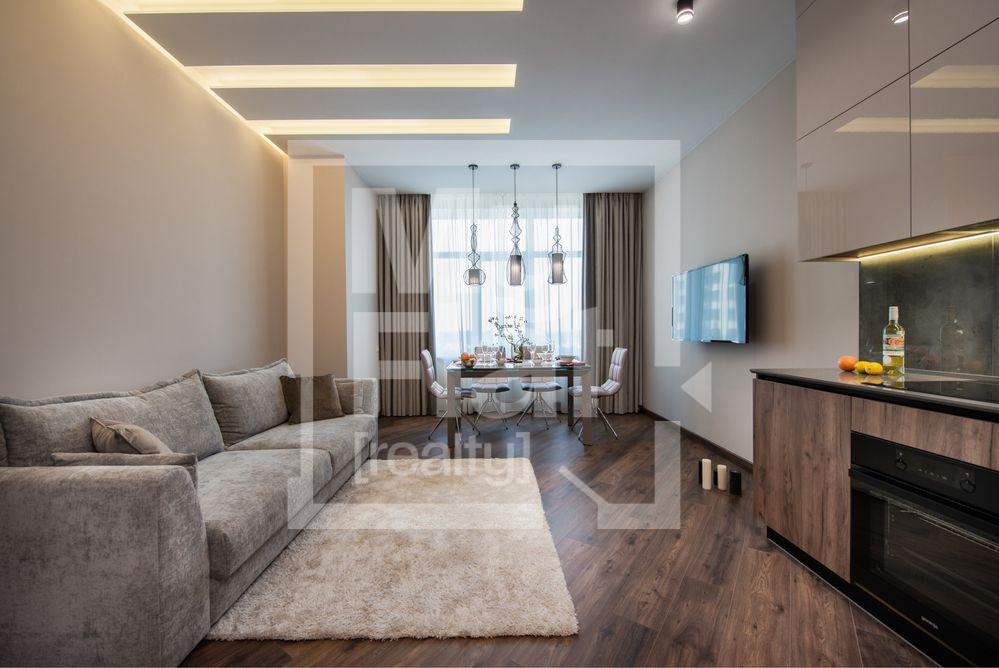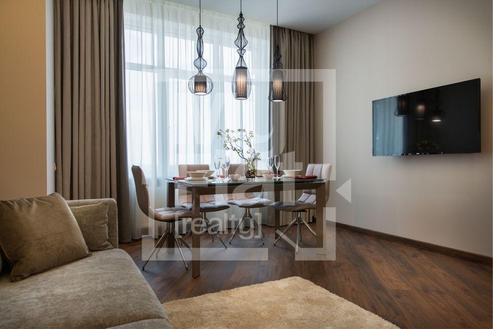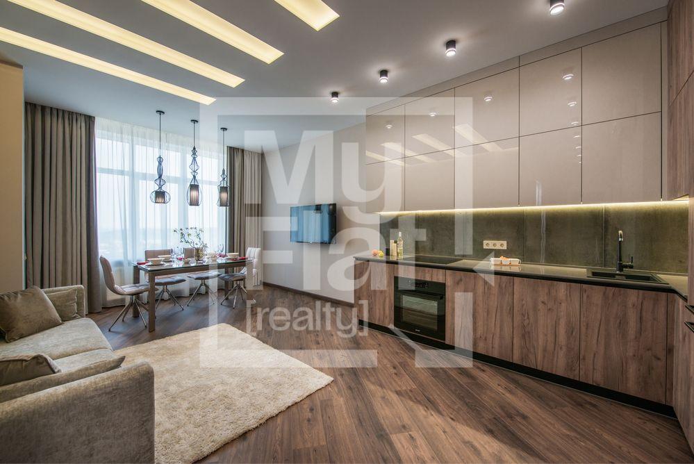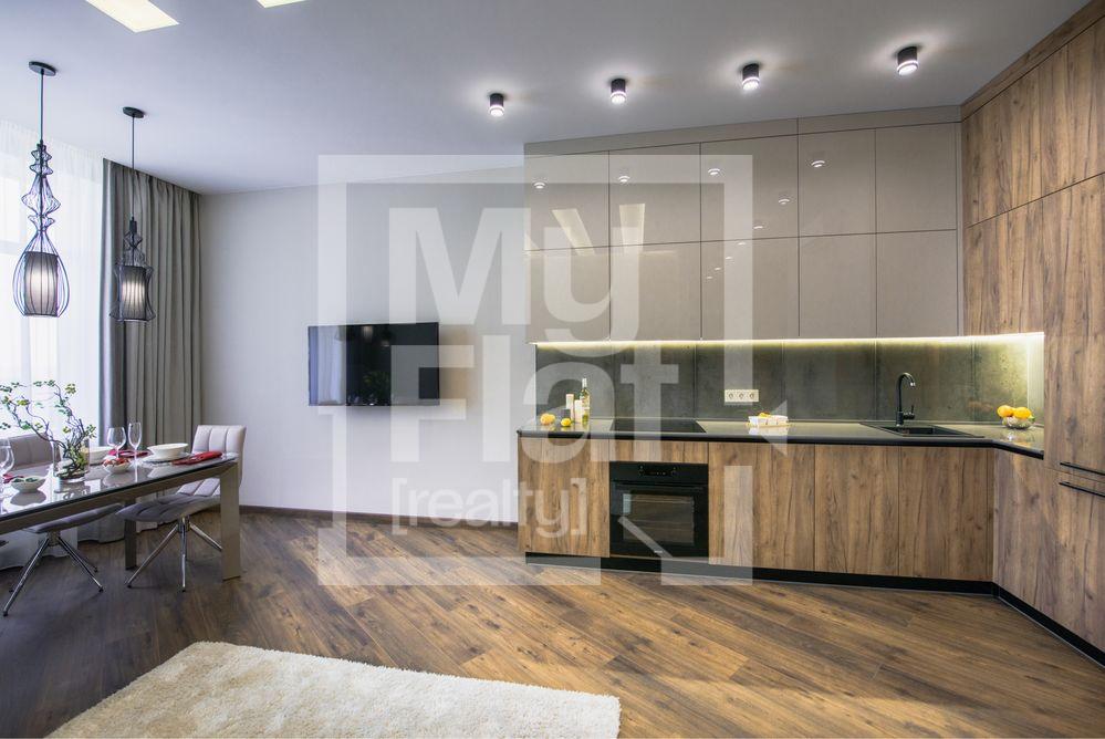 У квартирі виконано авторський ремонт у сучасному стилі з використанням натуральних матеріалів (паркет, мармур, граніт) та техніки провідних Європейських виробників преміум класу.